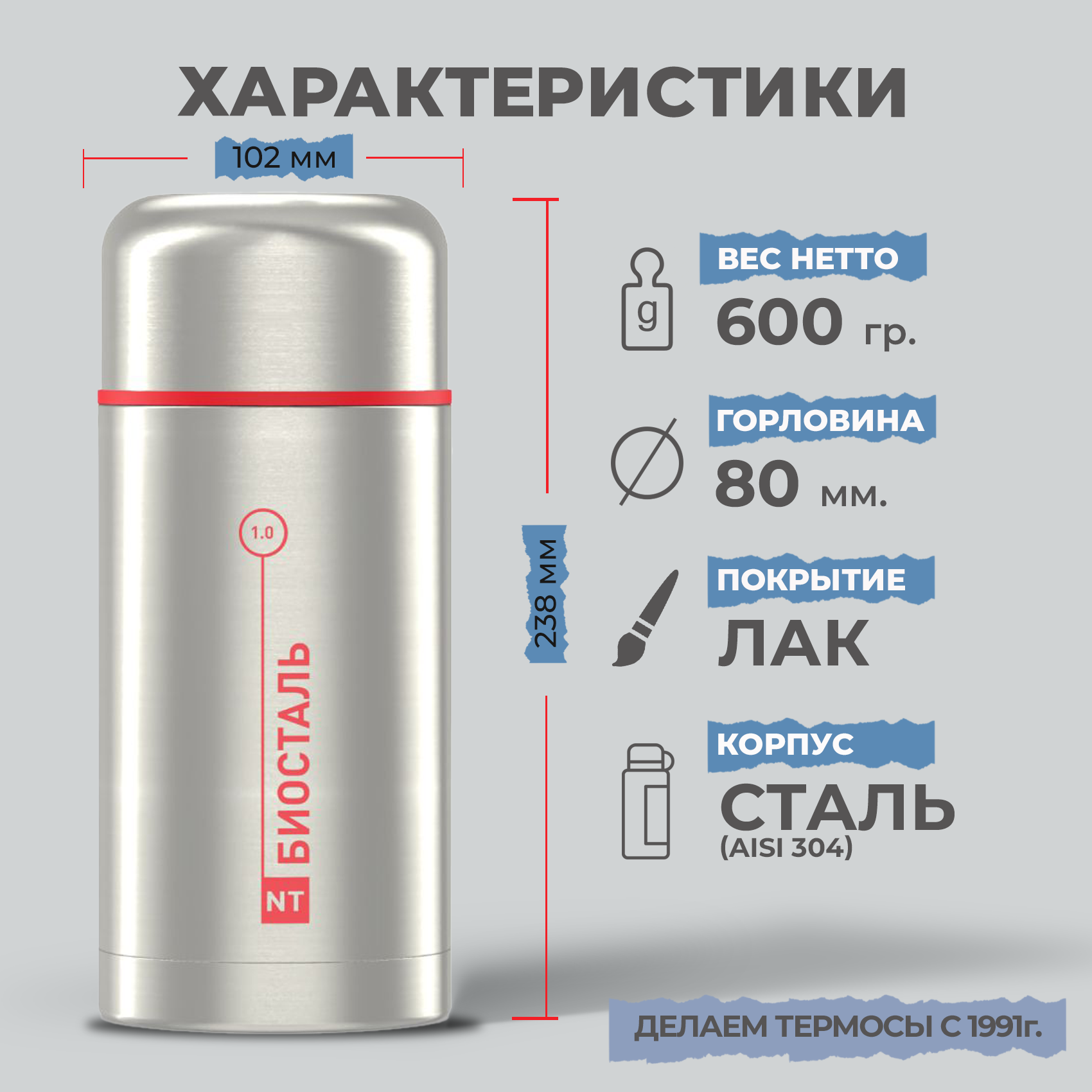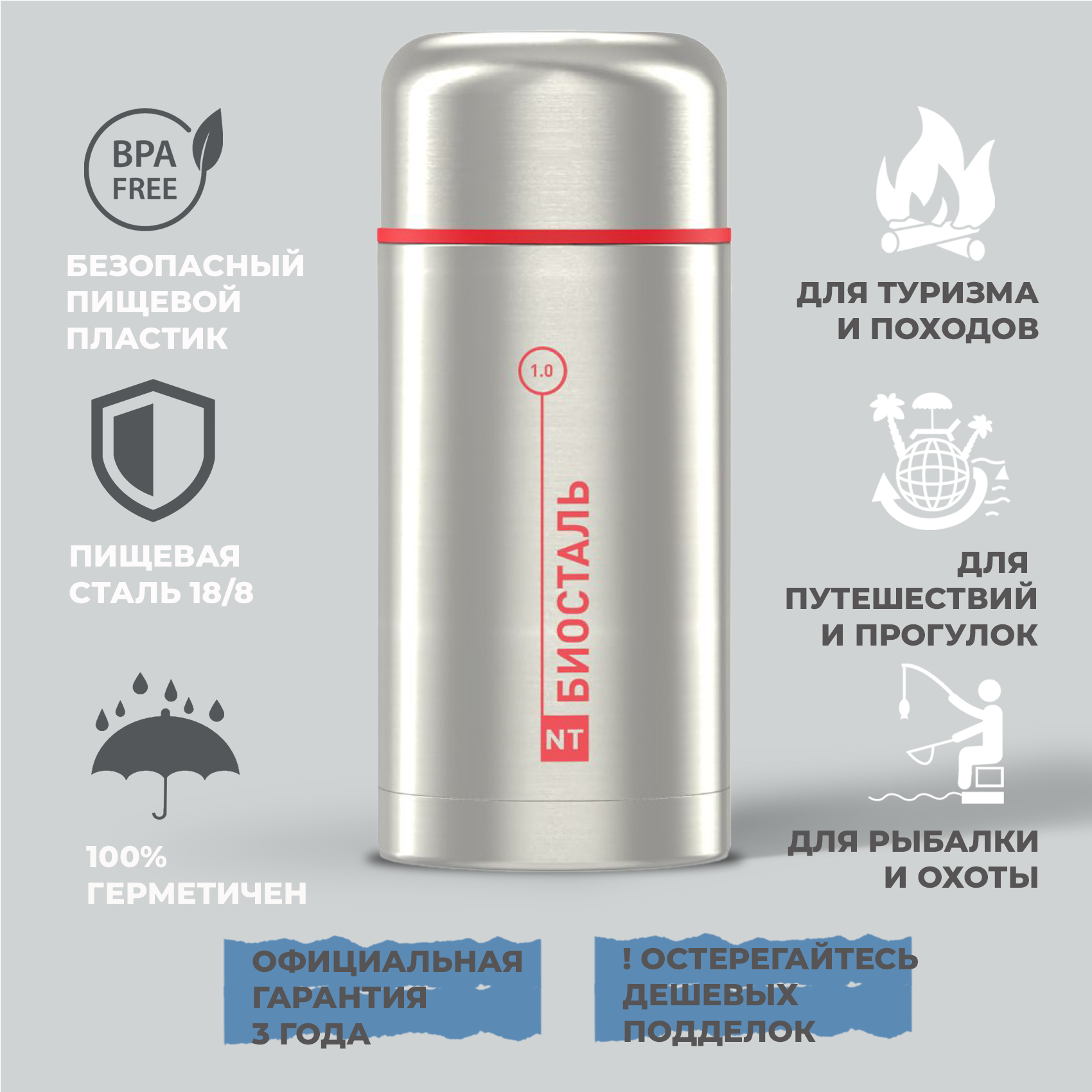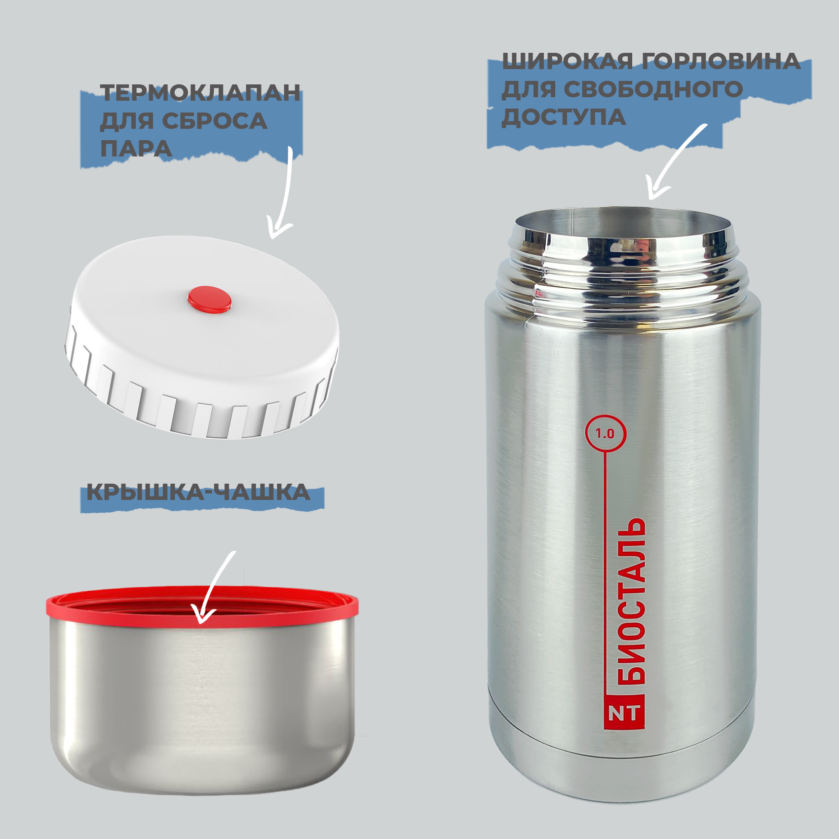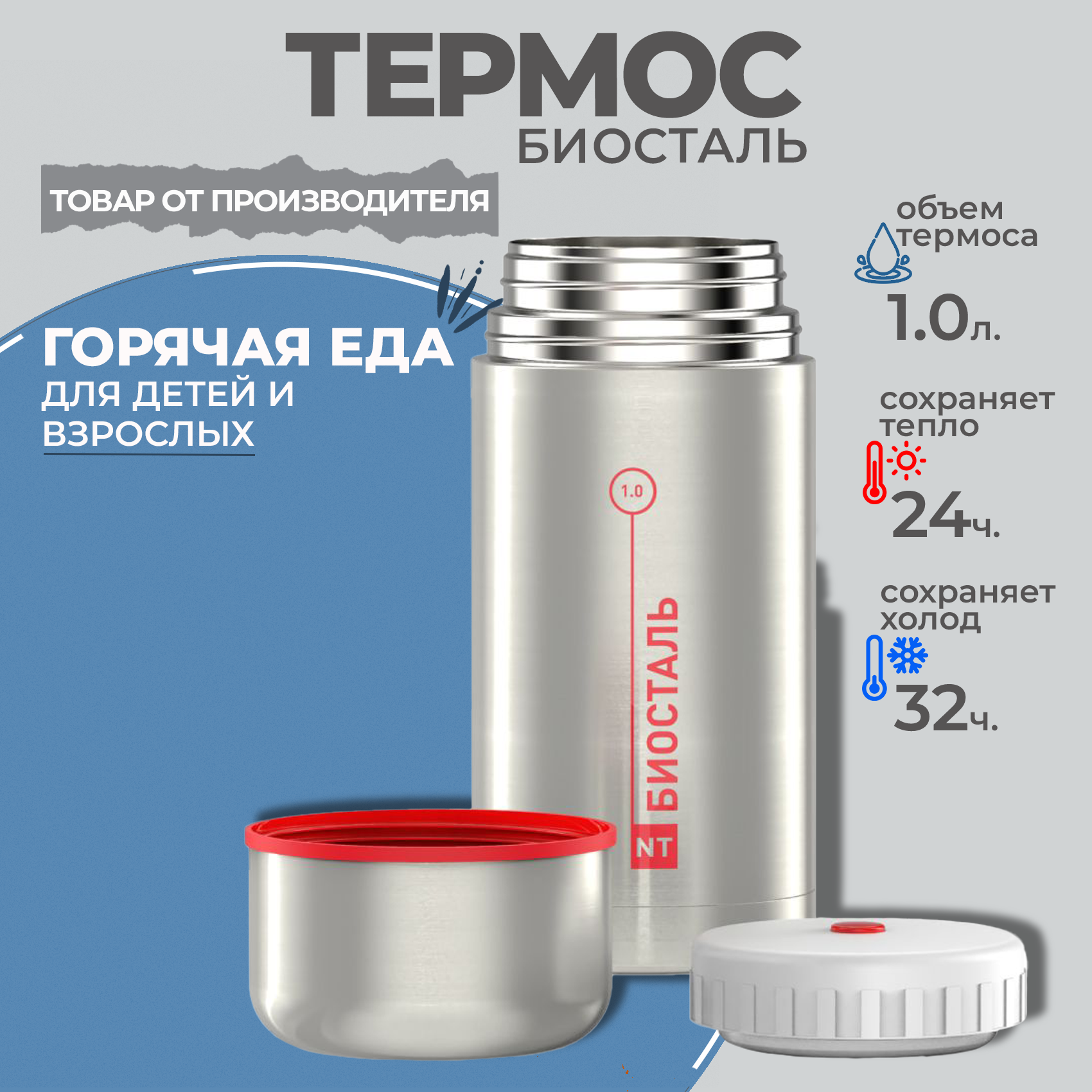 Термос Классический с широким горлом, суповой Биосталь/Biostal (1), NT-1000X интересное: