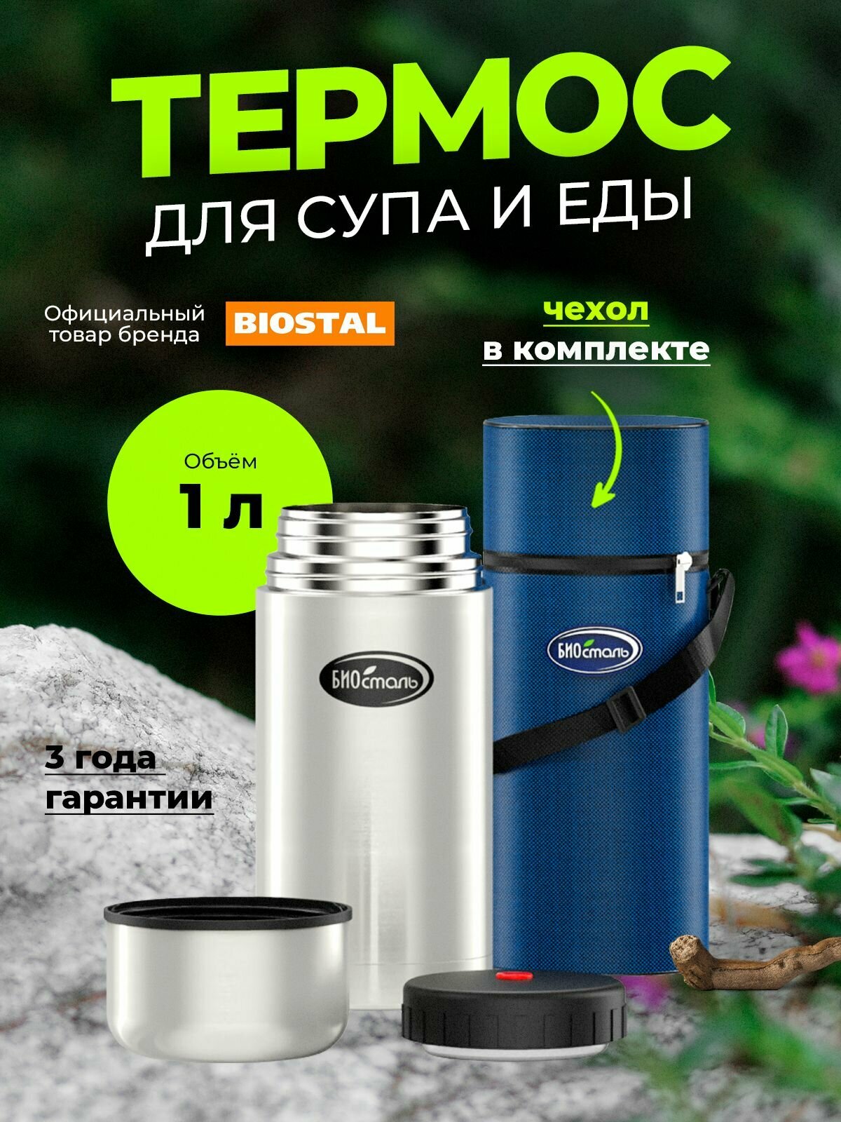 Термос 1 литр для еды Биосталь с чехлом, суповой, универсальный интересное: