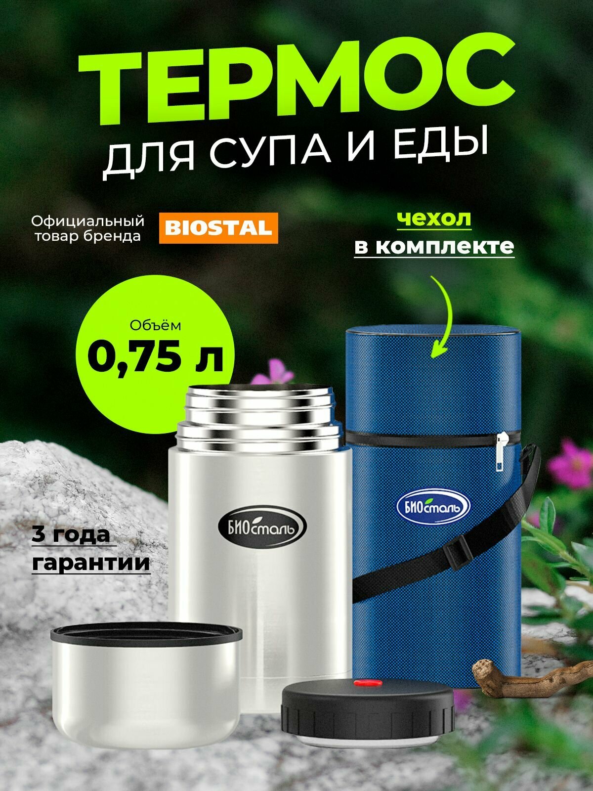 Термос 0.75 литра для еды Биосталь с чехлом, суповой, универсальный интересное: