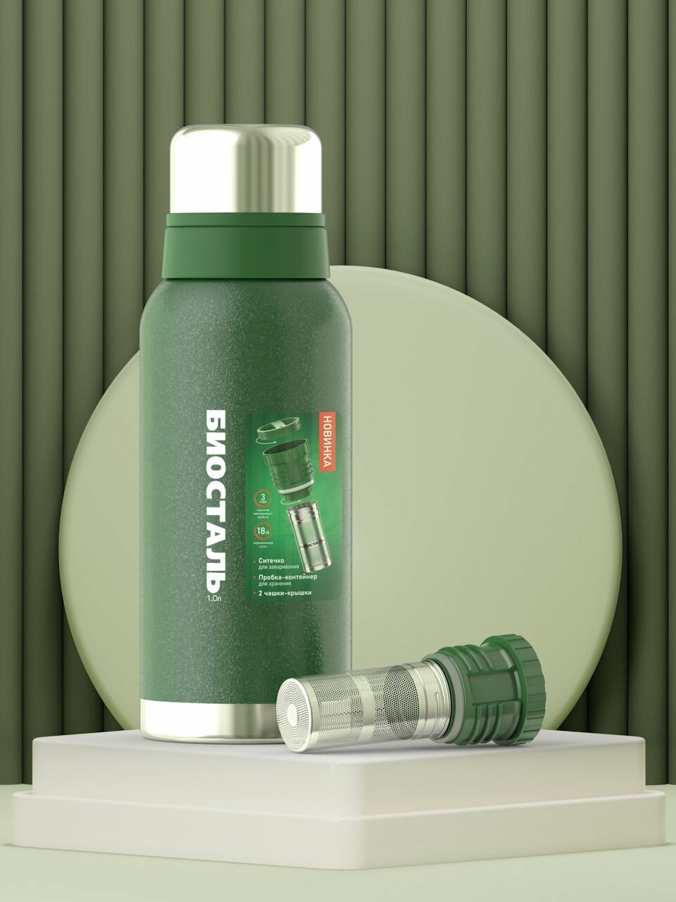 Термос Биосталь 1 литр вакуумный с узкой горловиной, пробка-контейнер с ситечком, Biostal 1000 мл интересное: