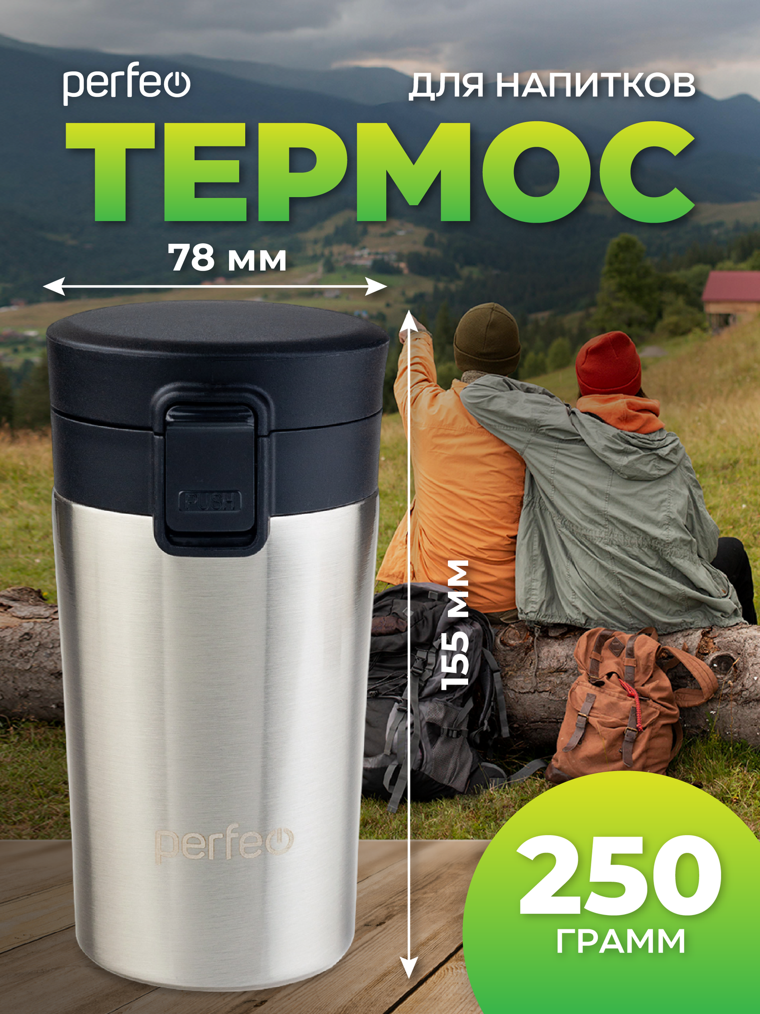 Купить Термокружка PERFEO для напитков с крышкой-поилкой, ситечком, объем 0,25 л, нерж. сталь (PF_C3727)