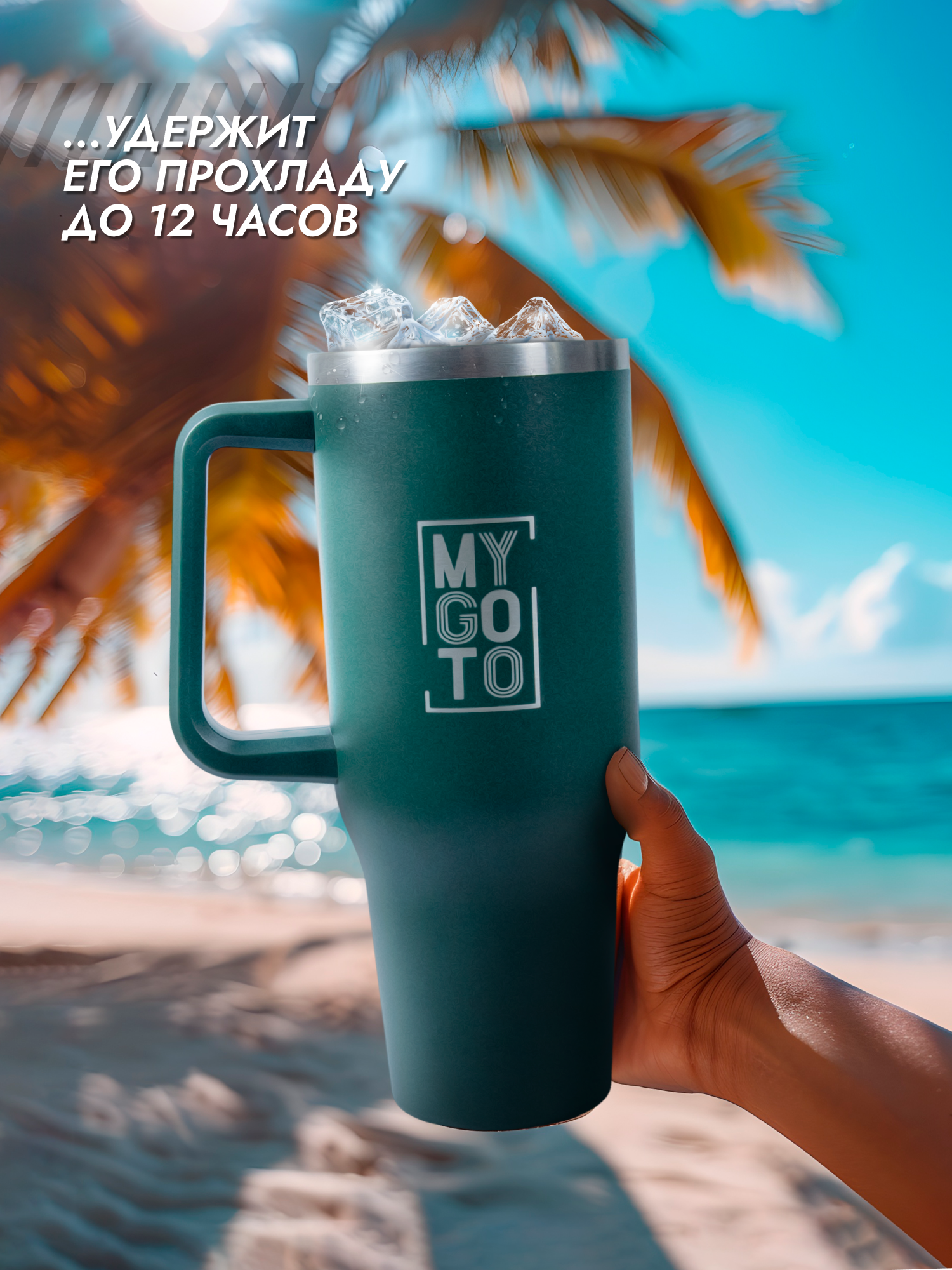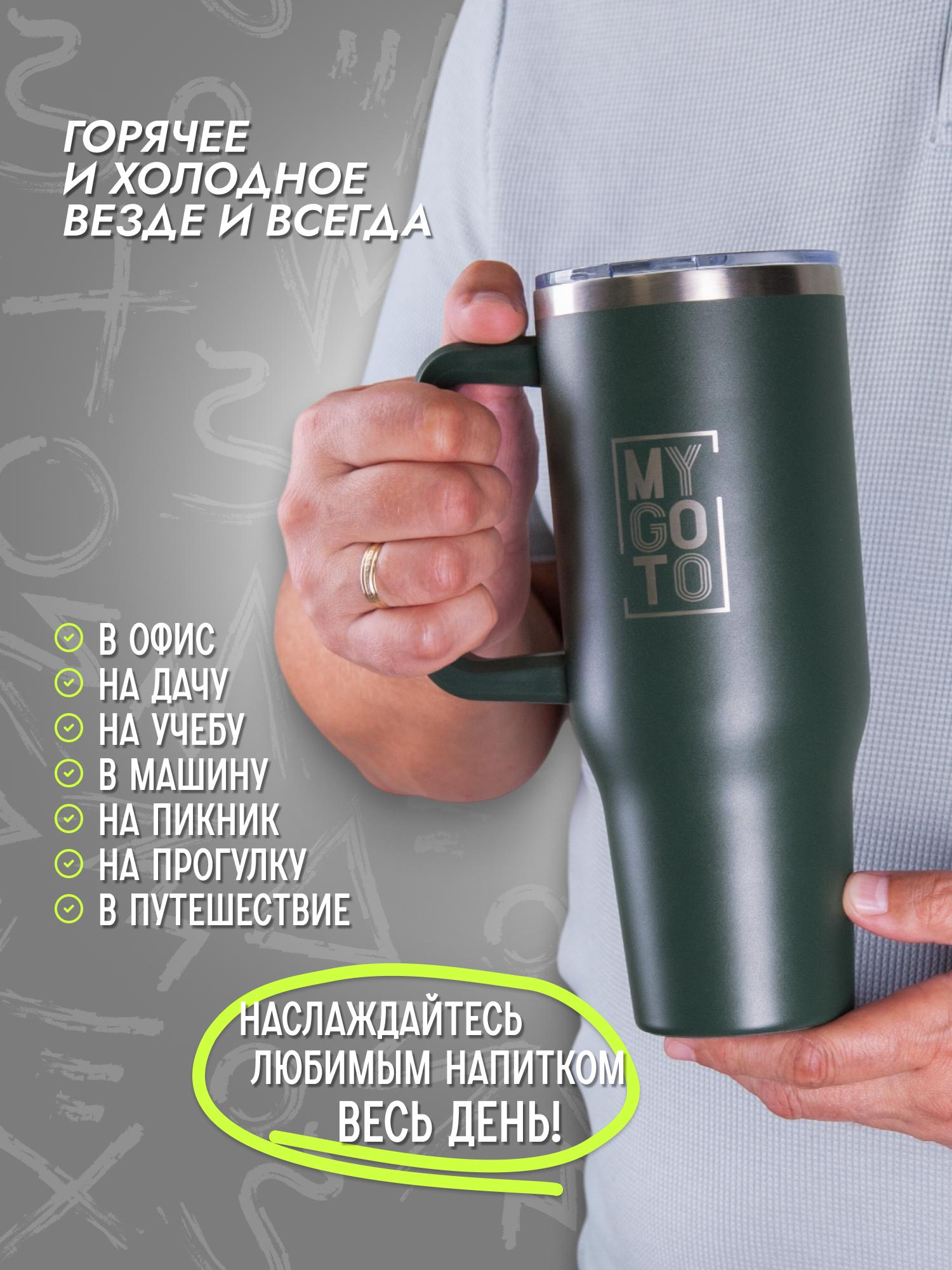 Термокружка MY GO TO Tumbler, нержавеющая сталь, 1.18л, с ручкой, темно-зеленый интересное: