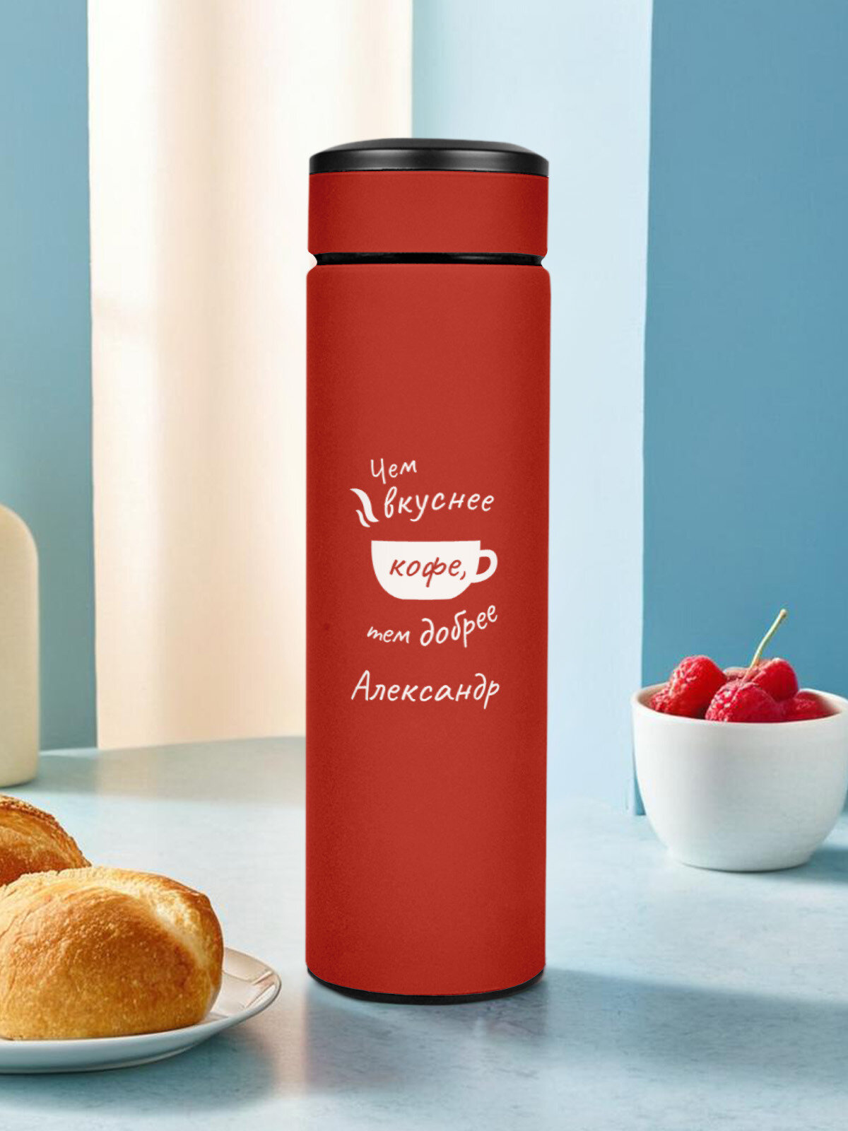Термос красный для чая вакуумный 0,5 л Александр интересное: