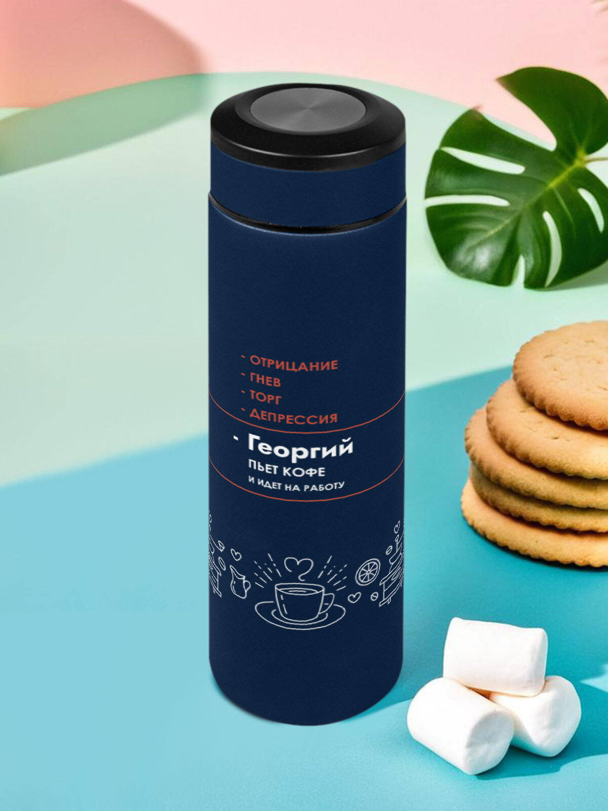 Купить Термос темно-синий для чая вакуумный 0,5 л Георгий