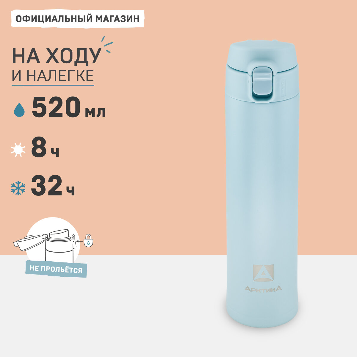 Термокружка женская подарочная/Арктика 0.52 л голубая/для кофе с кнопкой интересное: