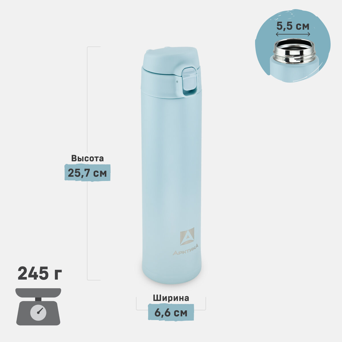 Термокружка женская подарочная 420 мл/Арктика 701 голубая/автомобильная с кнопкой