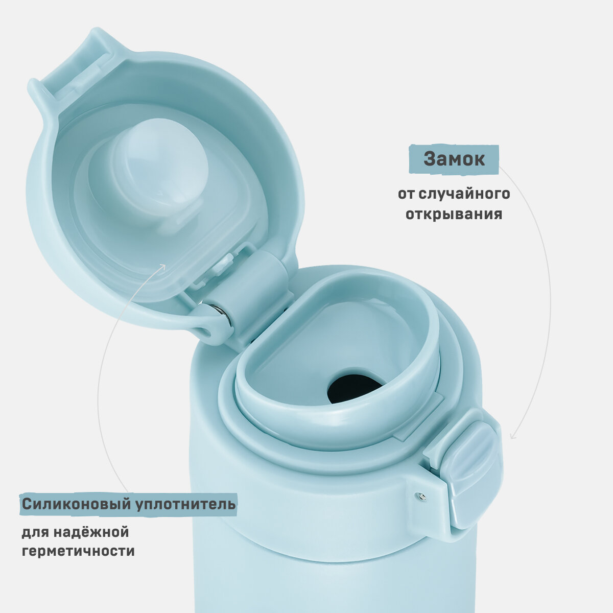 Термокружка женская подарочная 420 мл/Арктика 701 голубая/автомобильная с кнопкой интересное: