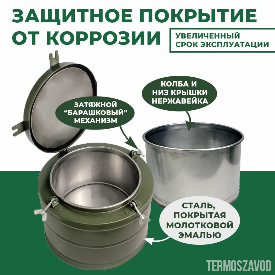 Термос армейский с широким горлом на 12 литров, ТГ-12. Для еды и супов. Полевая посуда для похода и пикника