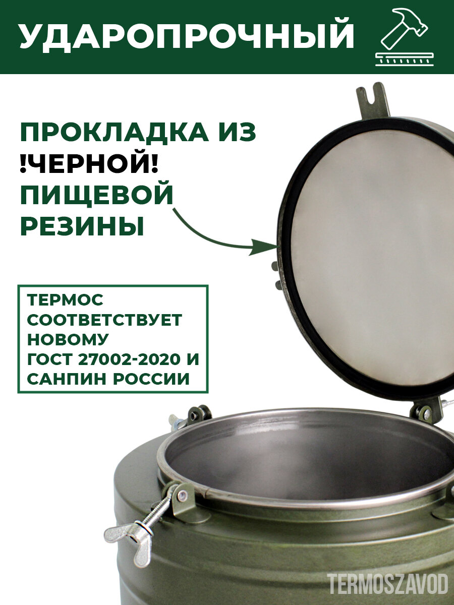 Термос армейский ТГ-36, 36 л, для еды и супа, нержавеющая сталь, сохранение тепла до 6 часов
