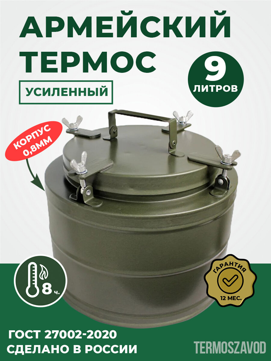 Купить Термос армейский ТГ-9, 9 л, широкое горло, для еды и супа, нержавеющая сталь, сохранение тепла до 8 часов