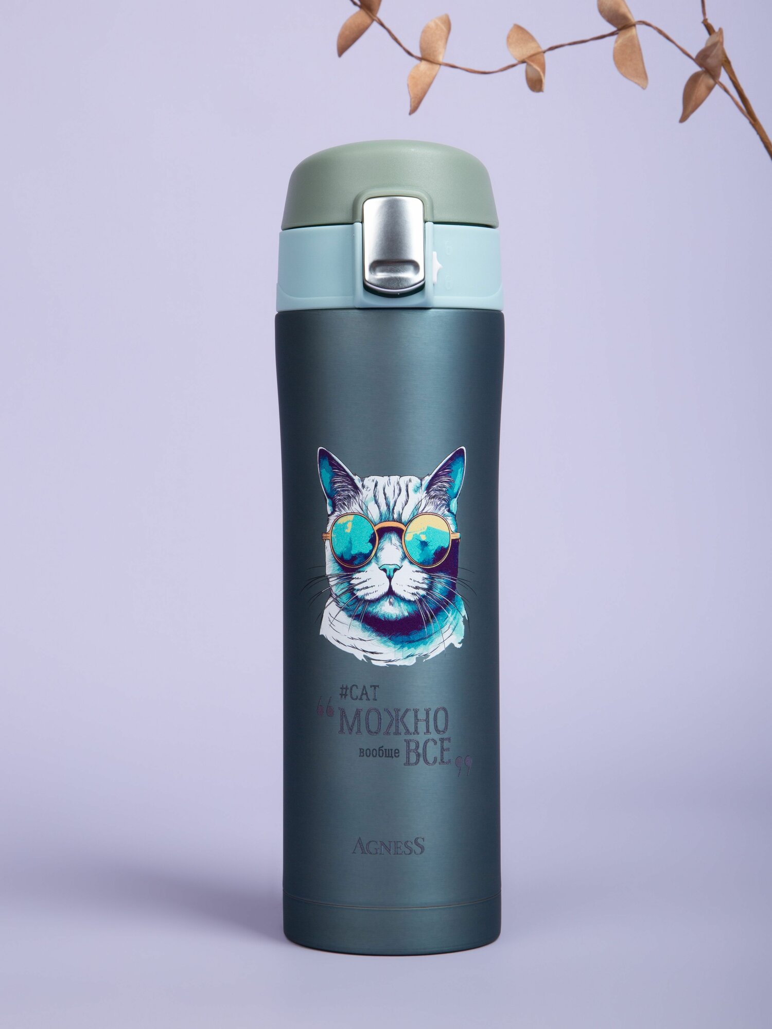 Купить Термокружка Agness "Cat" объем: 420 мл, для горячих напитков