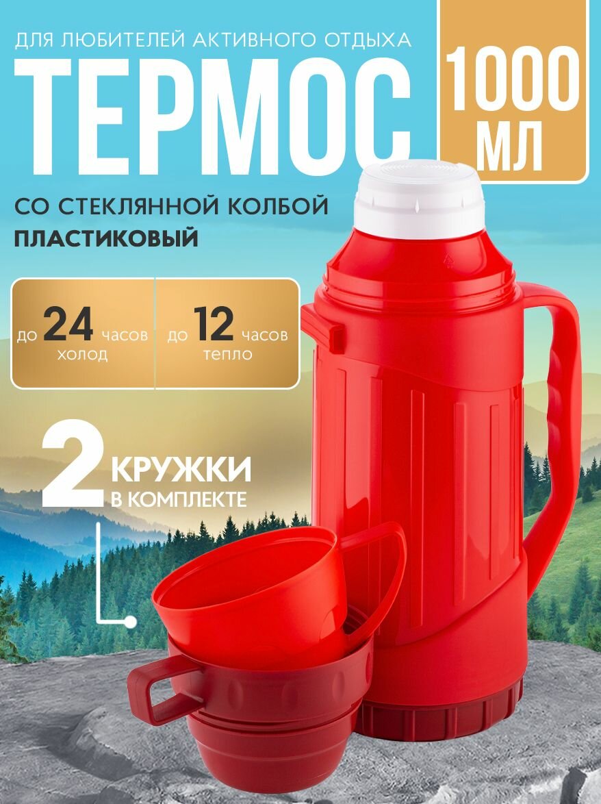 Термос со стеклянной колбой для чая и для кофе, объемом 1 литр