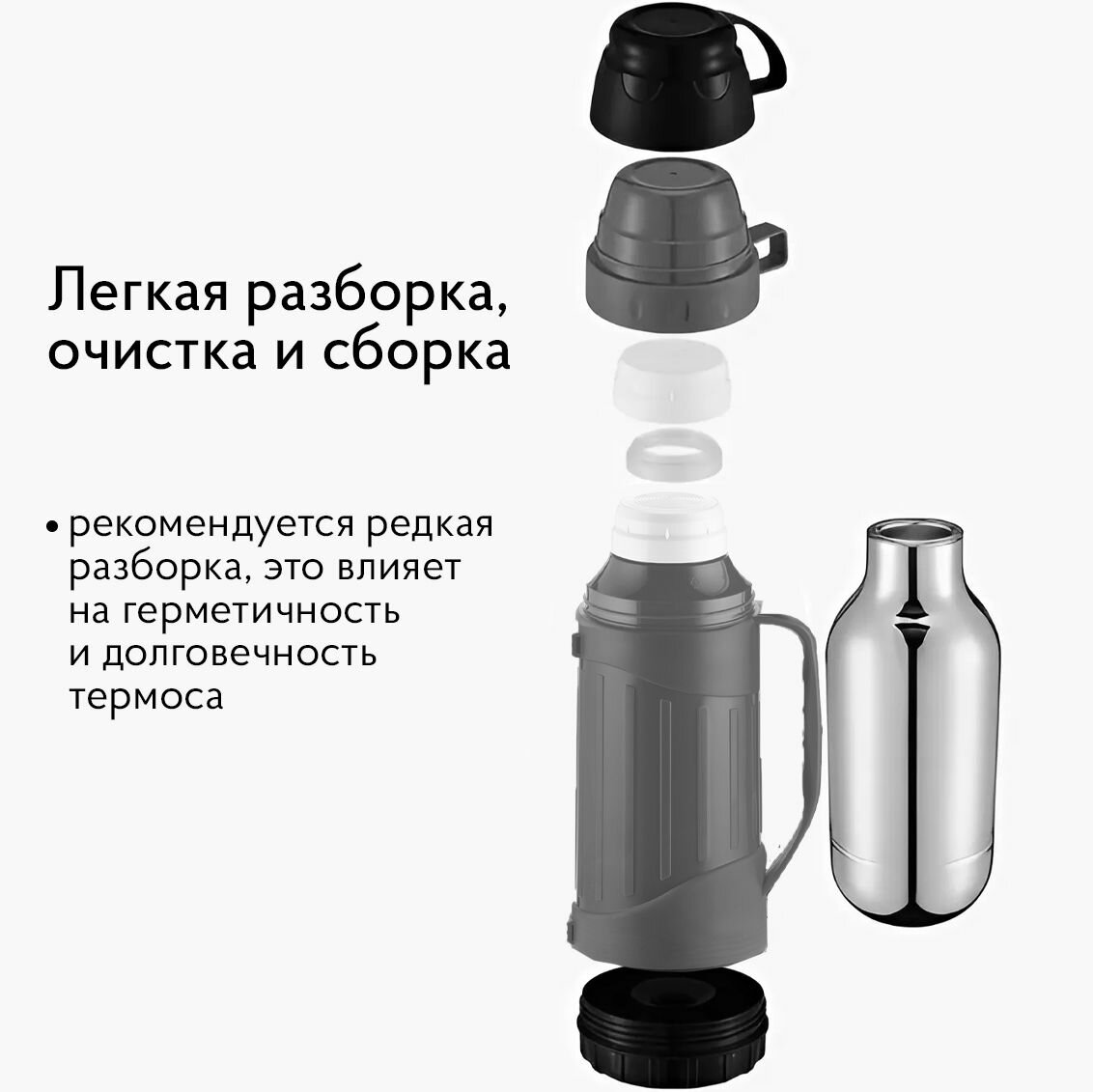 Термос со стеклянной колбой для чая и для кофе объемом 1,8 литров