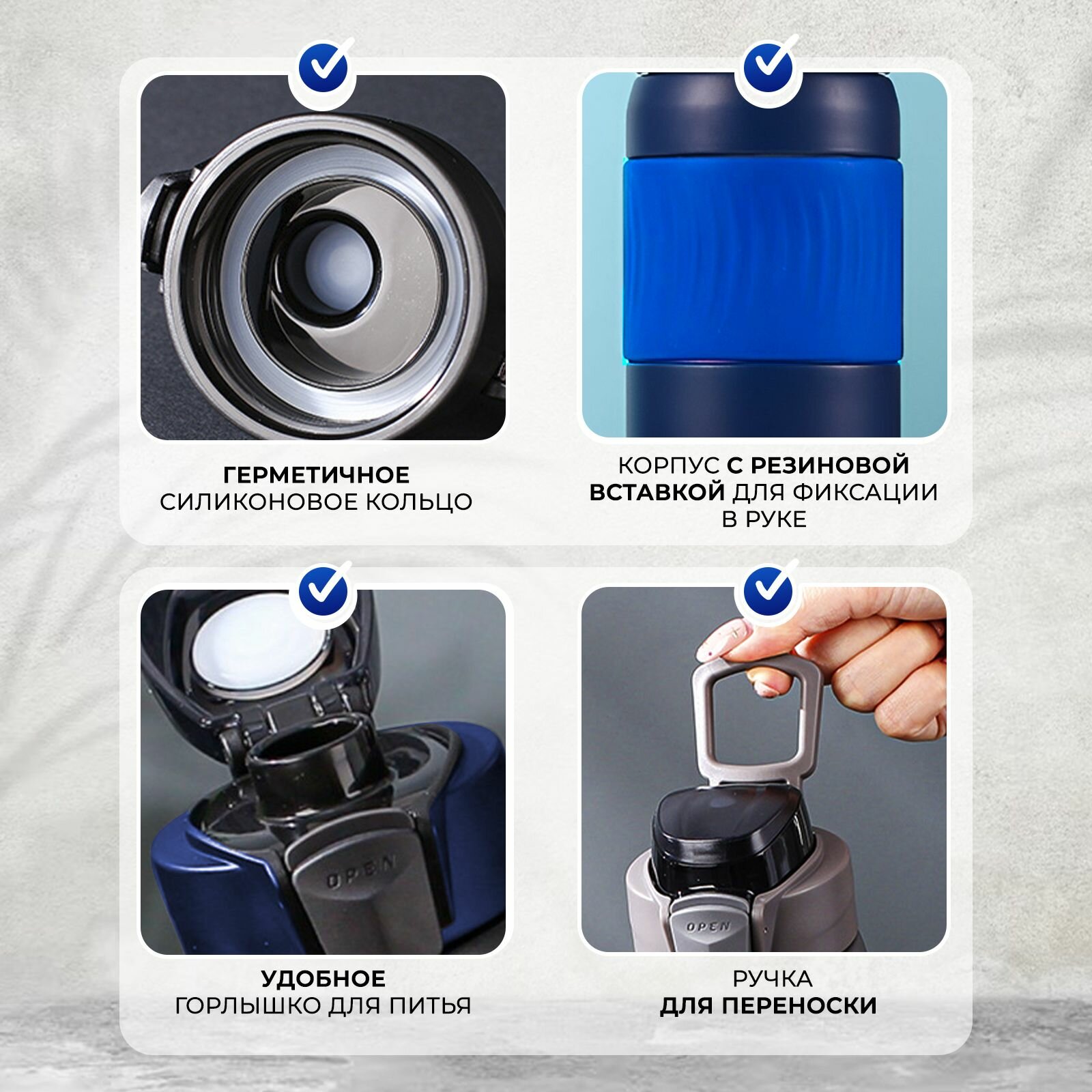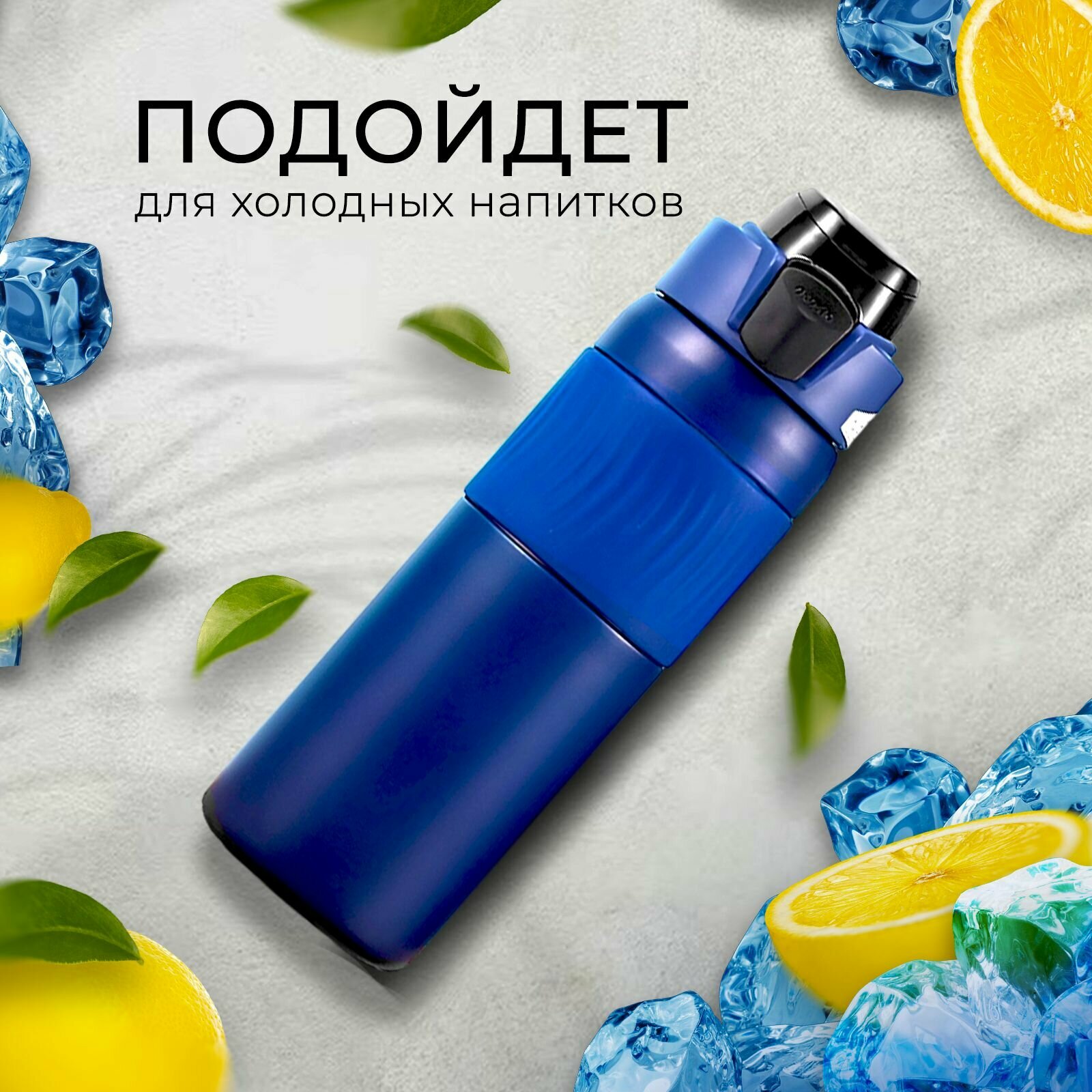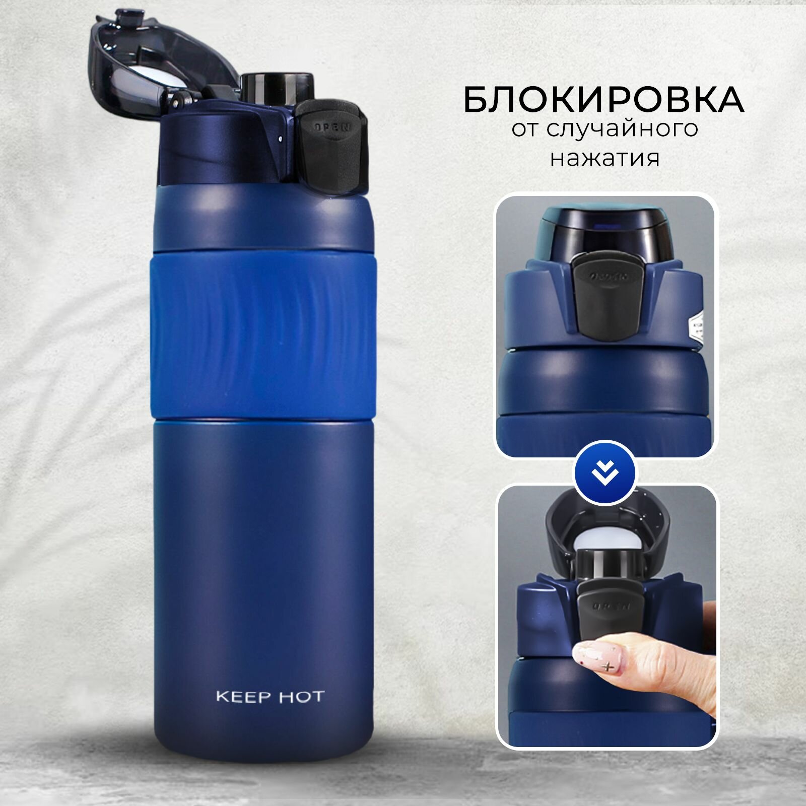 Купить Термобутылка KeepHot, нержавеющая сталь, клапан, кольцо для переноски, сохраняет тепло до 6ч, 600 мл, синяя
