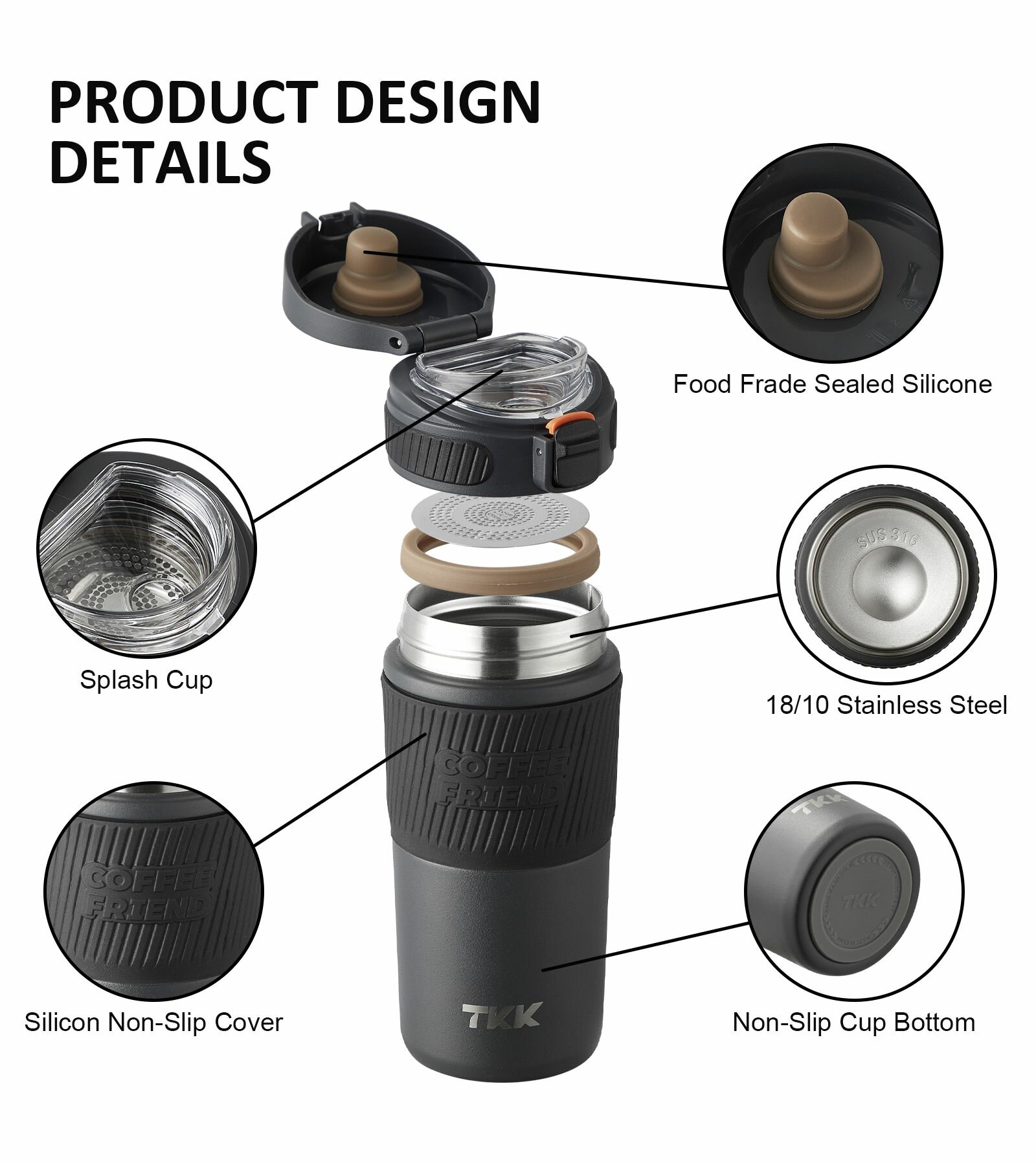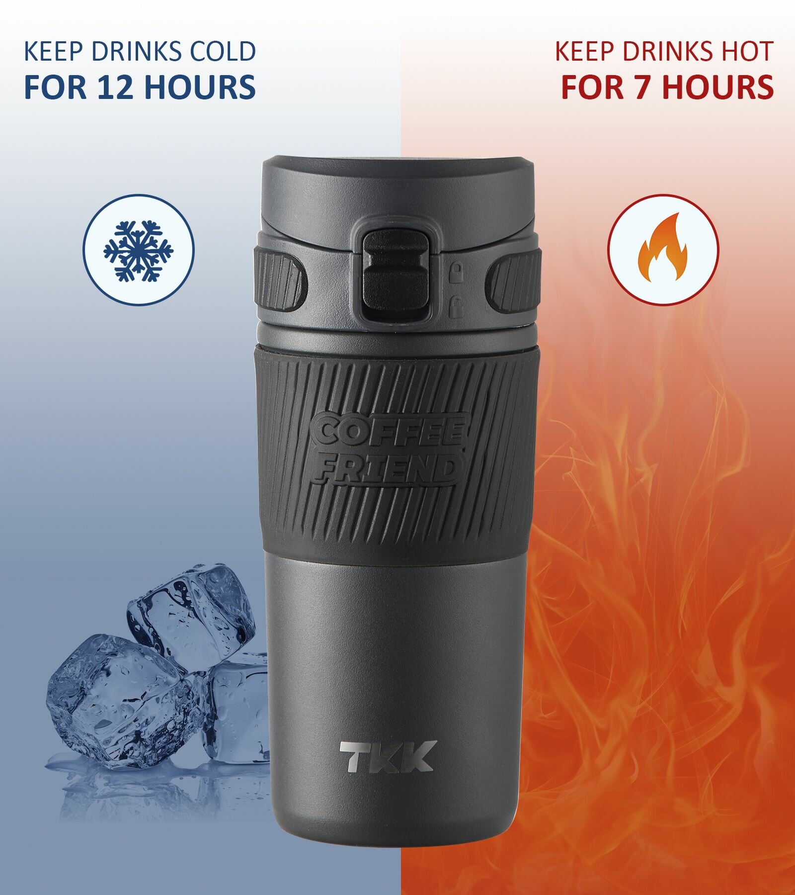 Купить Термокружка для чая и кофе термос TKK Premium из нержавеющей стали, 450 мл, чёрный