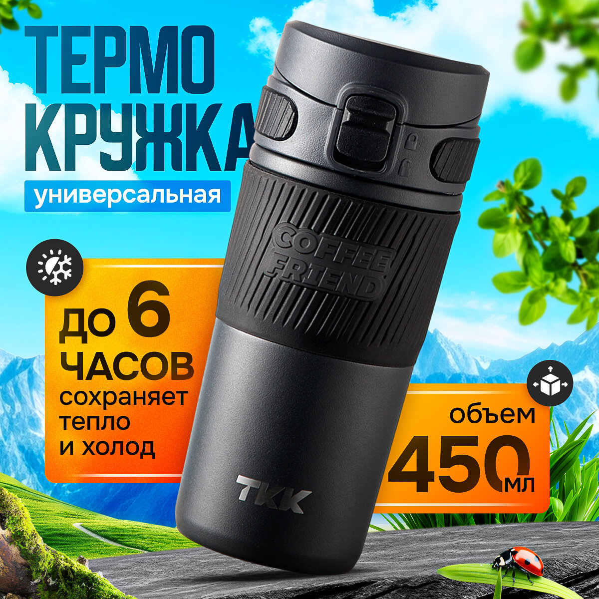Термокружка для чая и кофе термос TKK Premium из нержавеющей стали, 450 мл, чёрный интересное: