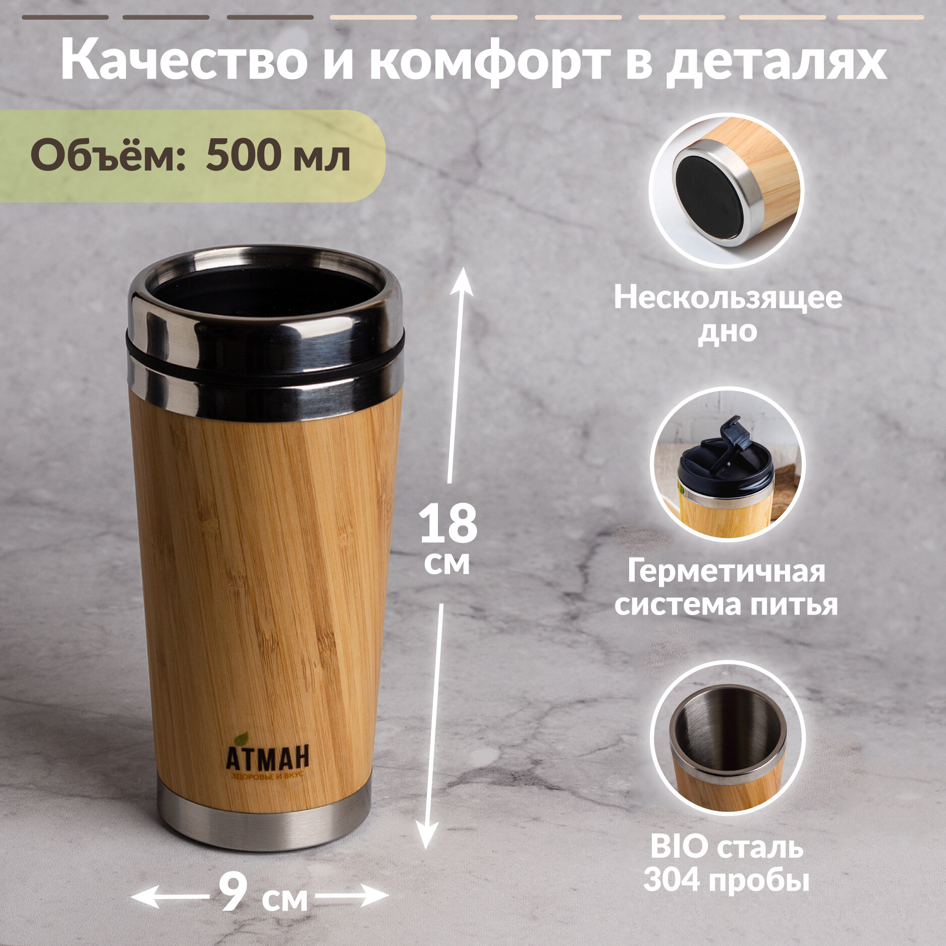 Термокружка Бамбуковая автомобильная термобутылка для кофе или чая в машину, 500 мл, АТМАН интересное: