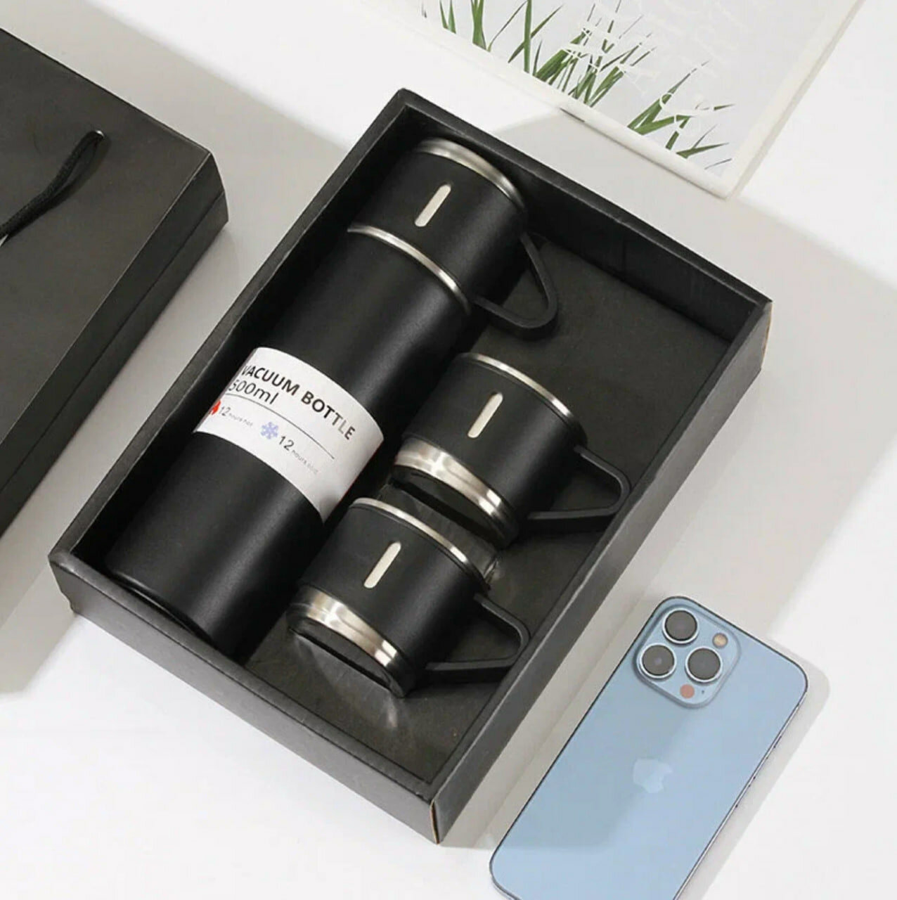 Термос Kattami, подарочный, с кружками, сохраняет тепло до 12 часов, 500 мл