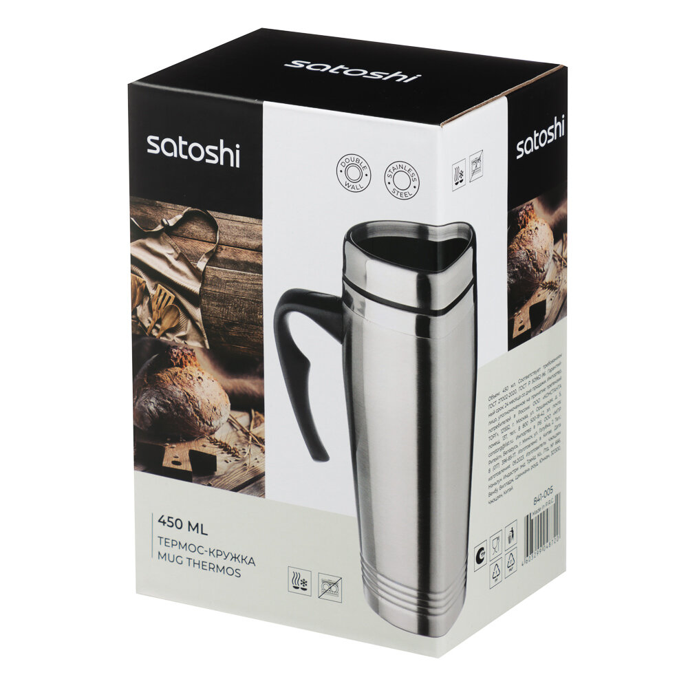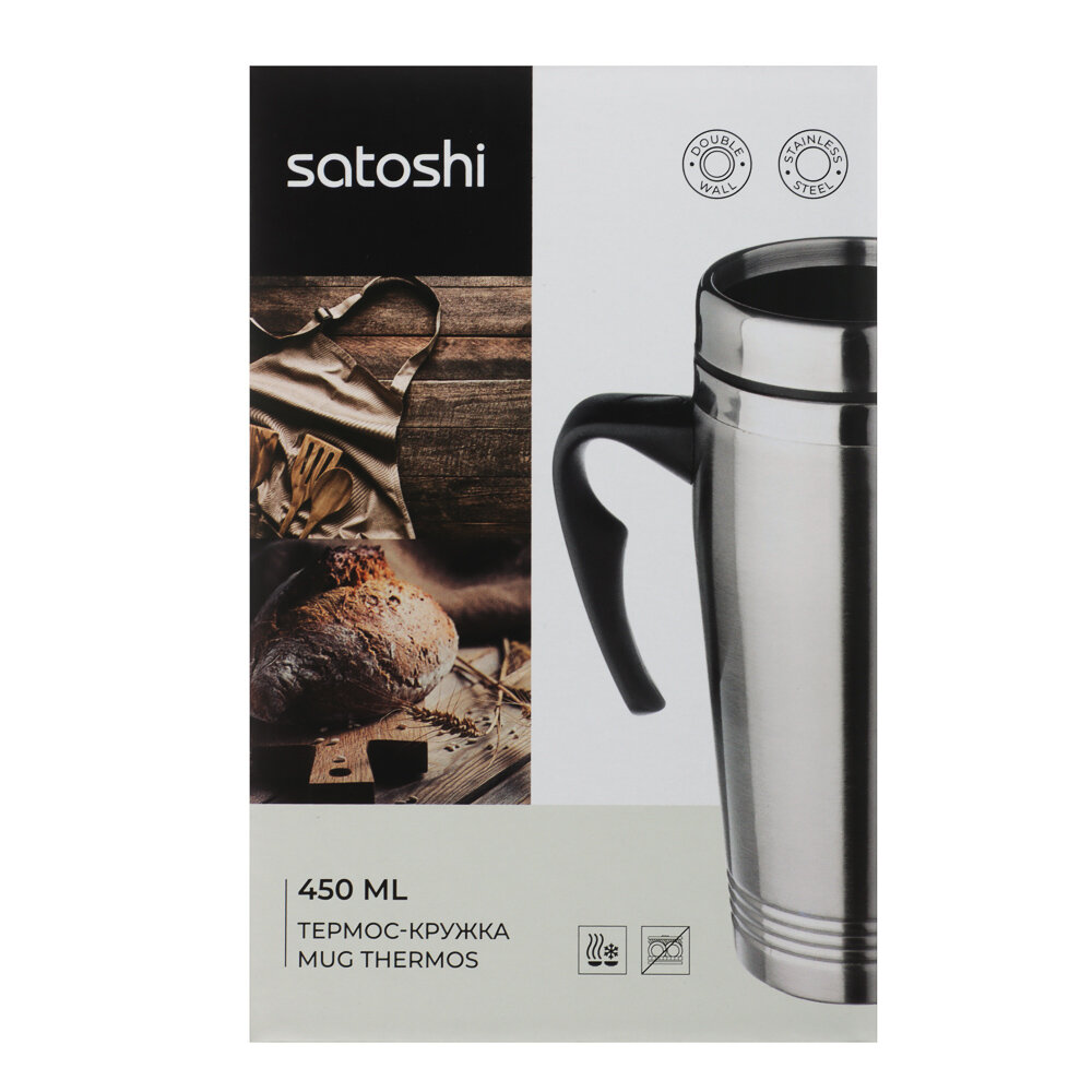 Термокружка 450 мл SATOSHI, вакуумная из нержавеющей стали, термос для чая, нержавейка интересное: