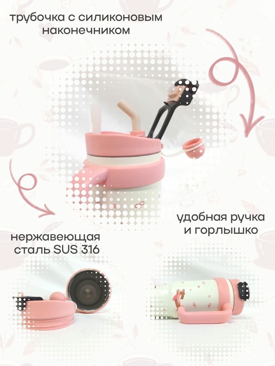 Термокружка с трубочкой для холодных и горячих напитков. Кошечки. 1000 мл, 25х15см