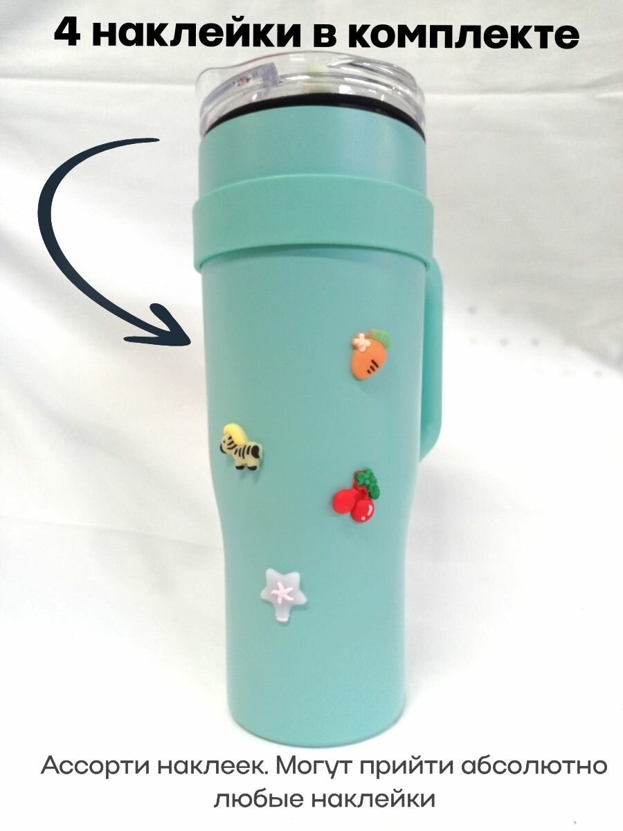 СохранитьТермокружка с трубочкой для холодных и горячих напитков. Бирюзовая. 1200 мл, 27х15см. Наклейки в комплекте интересное: