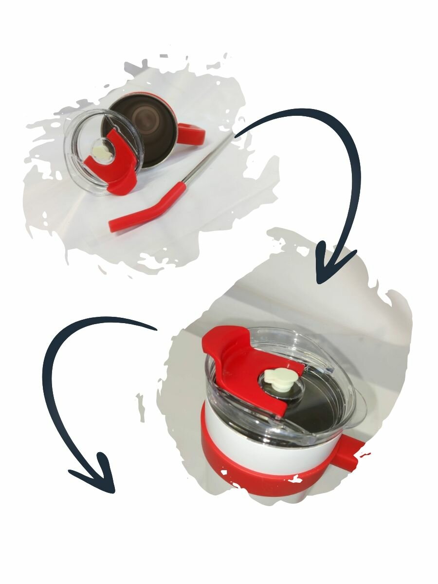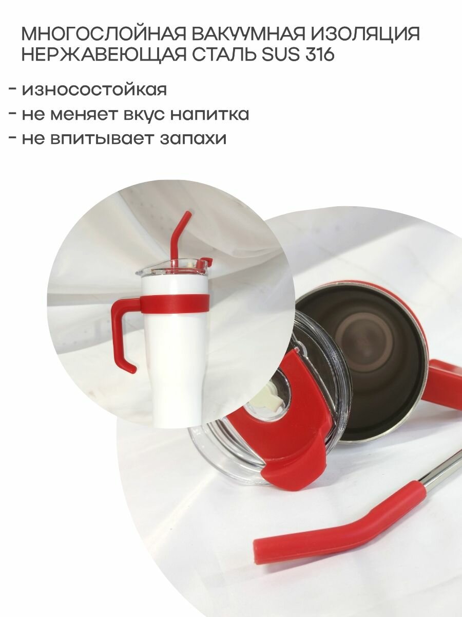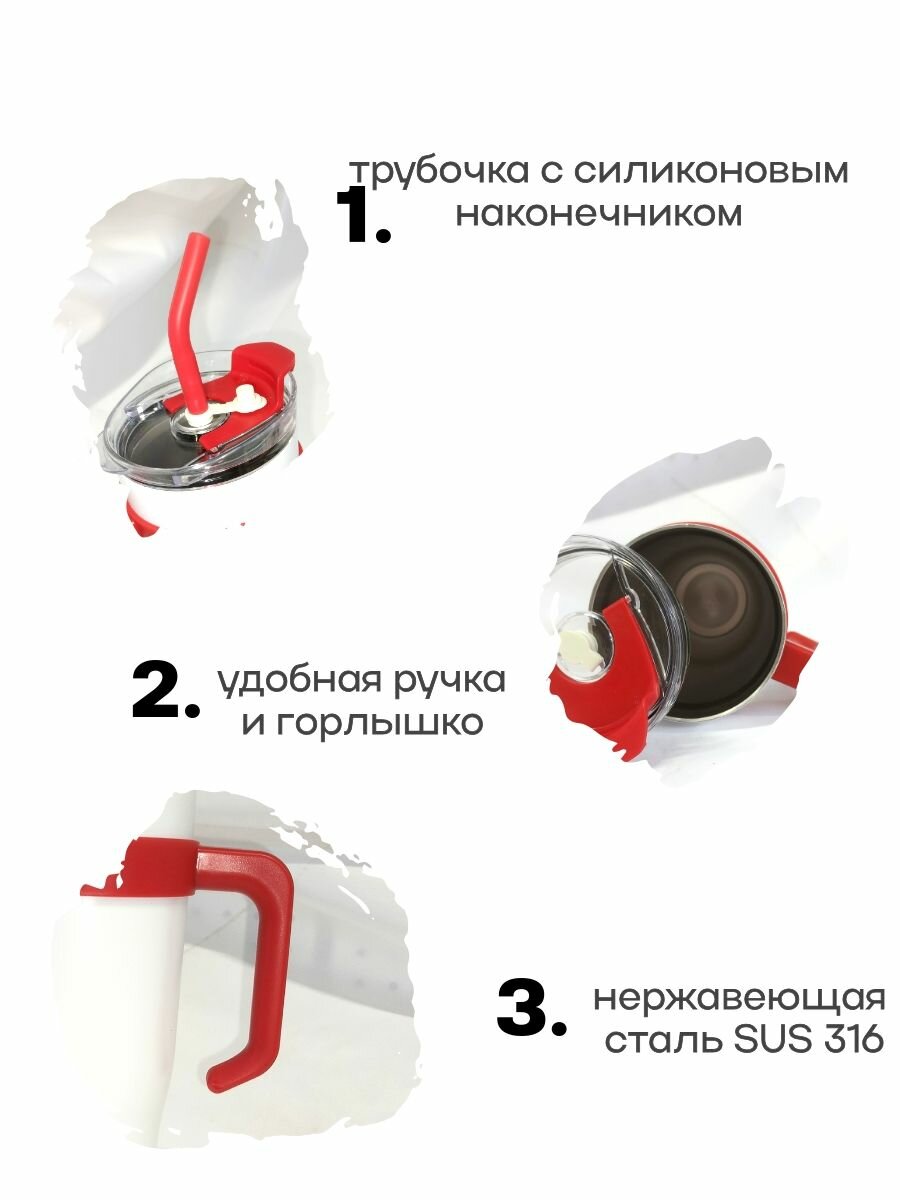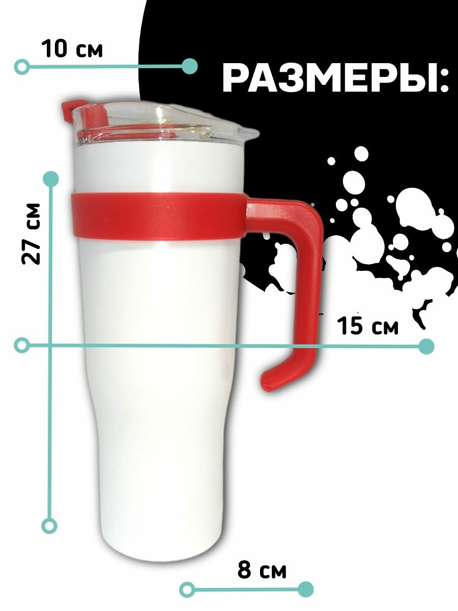Купить Термокружка с трубочкой для холодных и горячих напитков. Белая. 1200 мл, 27х15см. Наклейки в комплекте