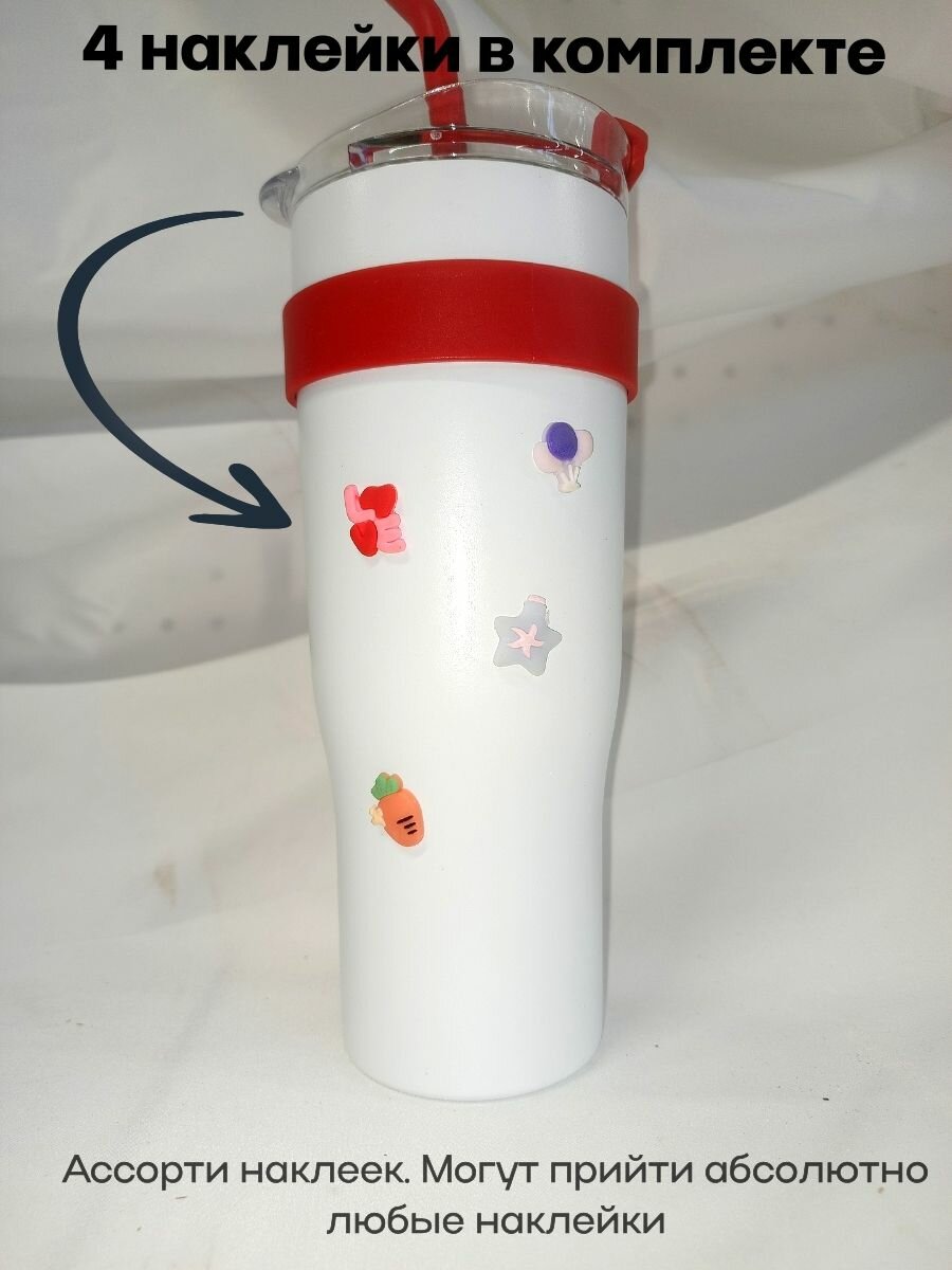 СохранитьТермокружка с трубочкой для холодных и горячих напитков. Белая. 1200 мл, 27х15см. Наклейки в комплекте интересное: