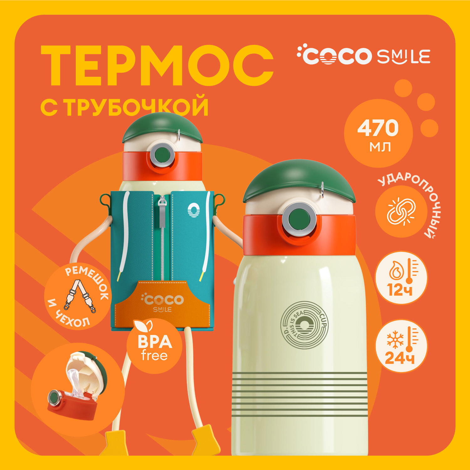 Детский термос для воды COCOSMILE Cap Sleeve 470 мл