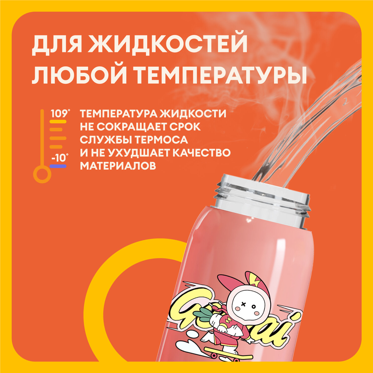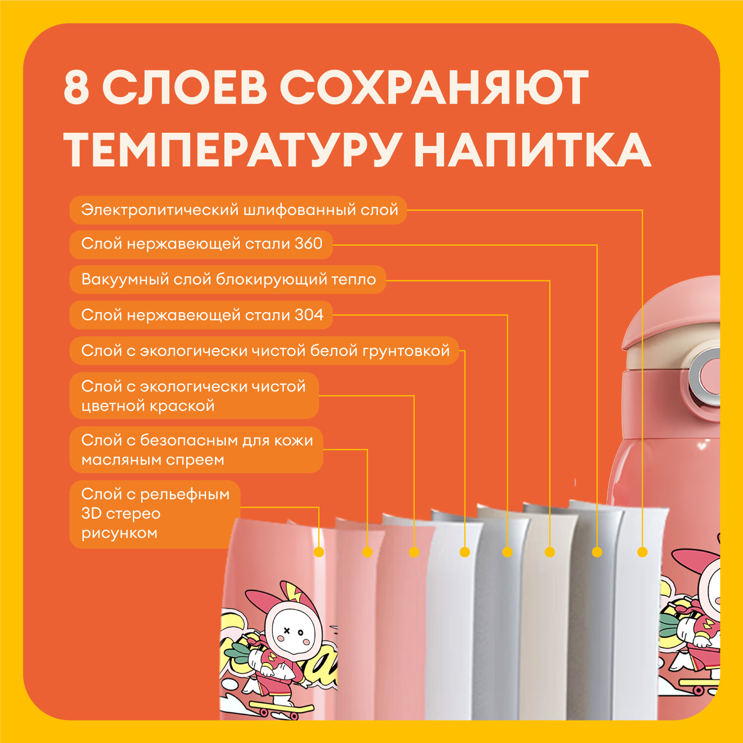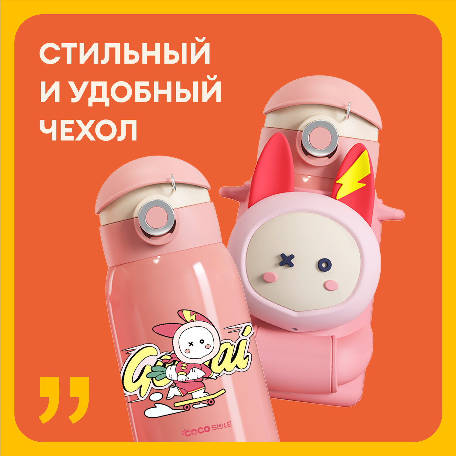 Детский термос с трубочкой COCOSMILE Cap Squeaker 470 мл, розовый заяц интересное: