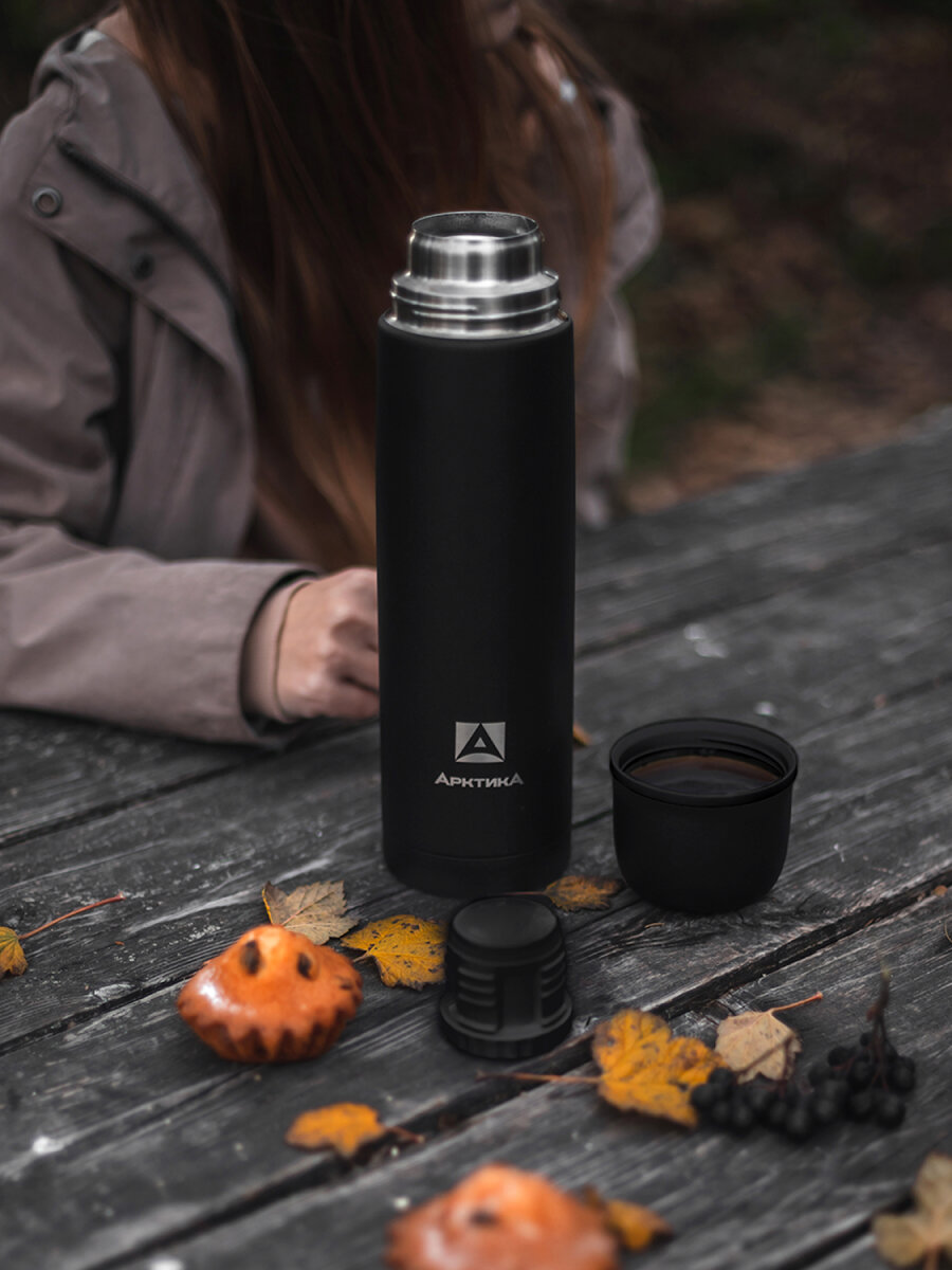 Термос для чая 1 л/Арктика 102 черный нержавеющая сталь/с кружкой интересное: