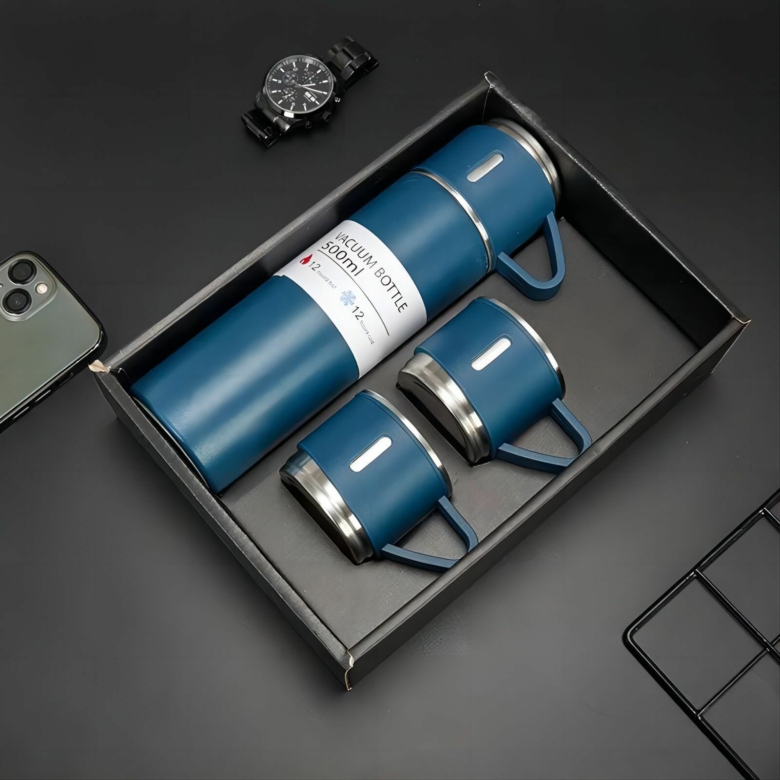 Купить Термокружка, термос с кружкой, нержавеющая сталь, вакуумный термос, термос, набор термос с кружками, 0,5 л, синий