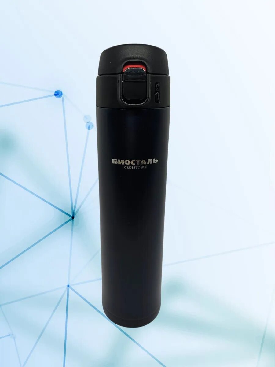 Термос-термокружка Биосталь, для чая и кофе, нержавеющая сталь, ABS-пластик, 420 мл, черный.