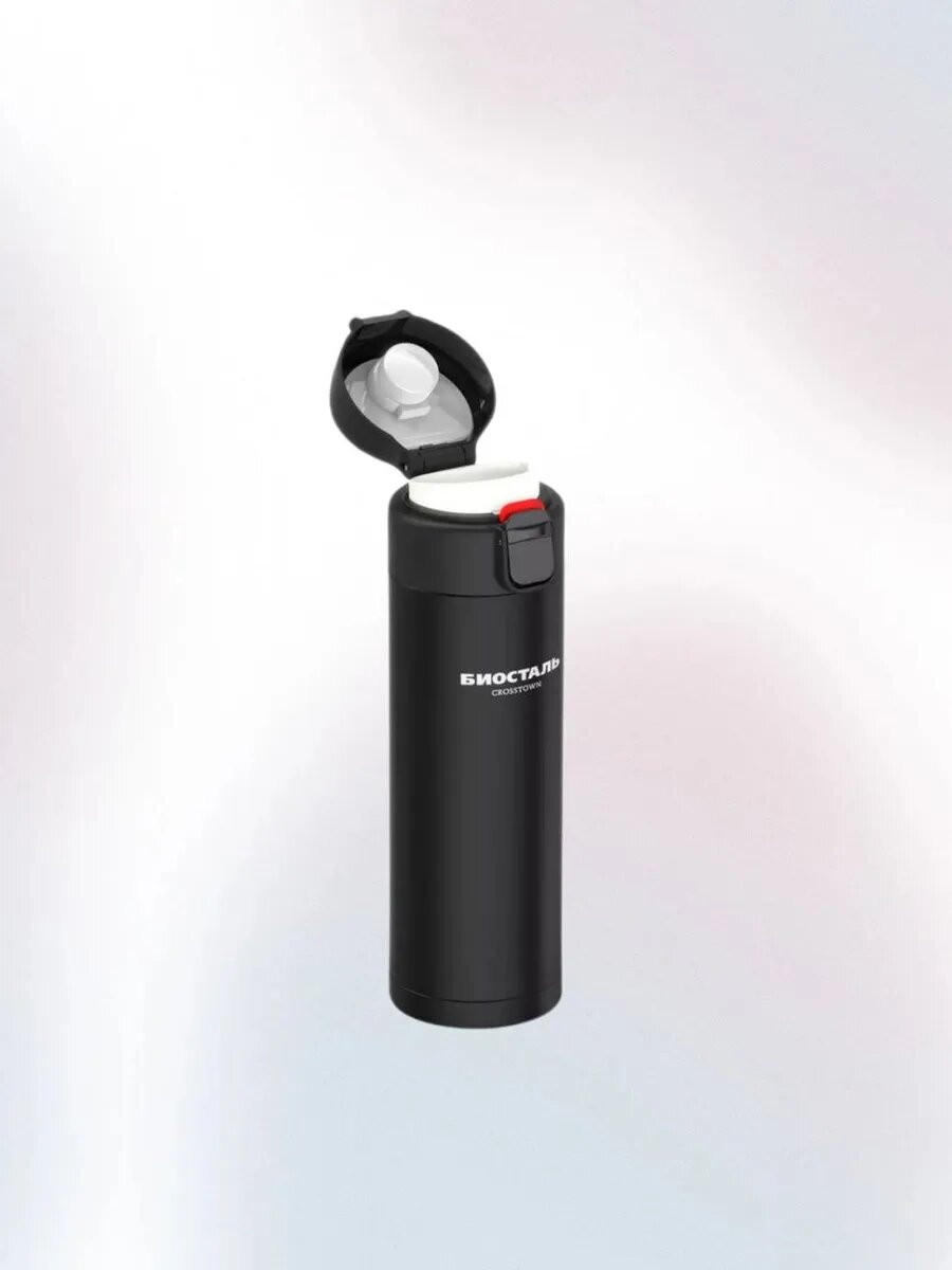 Купить Термос-термокружка Биосталь, для чая и кофе, нержавеющая сталь, ABS-пластик, 420 мл, черный.