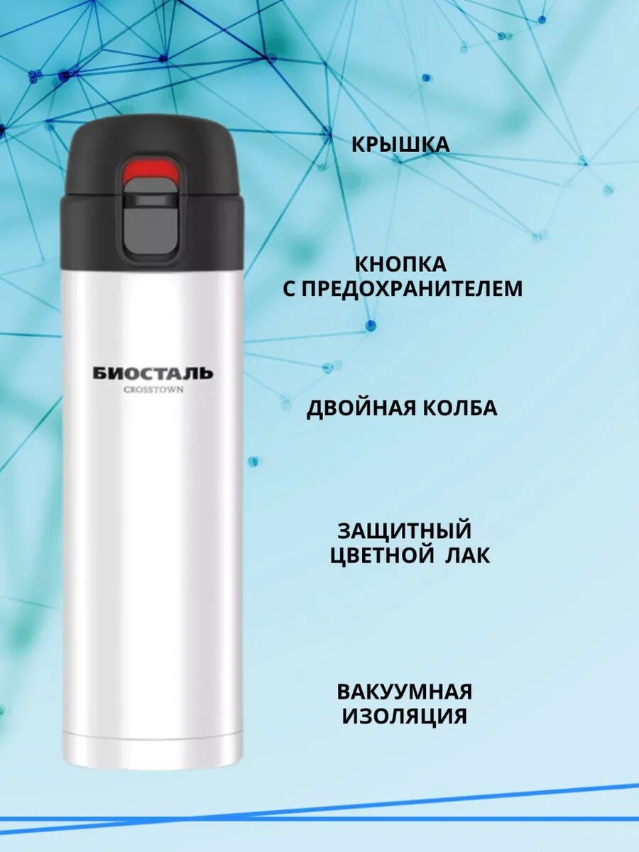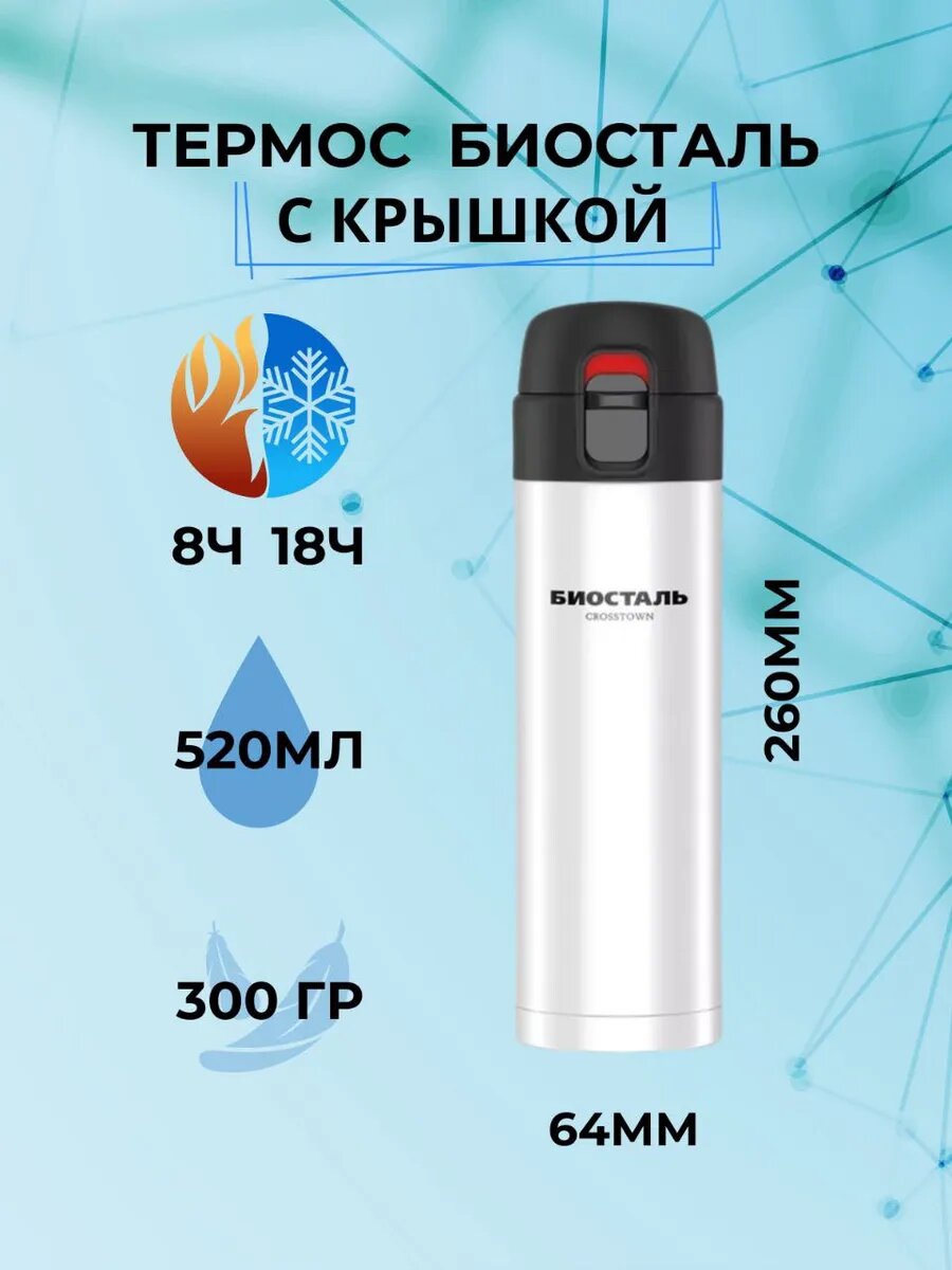 Термос-термокружка Биосталь, нержавеющая сталь и ABS-пластик, 520 мл, серебристый