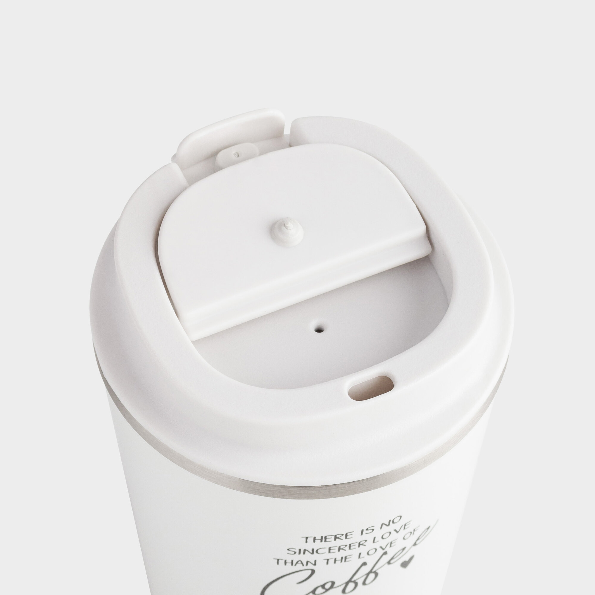 Термокружка, Kuchenland, 350 мл, сталь/пластик, белая, с надписью, Coffee time интересное: