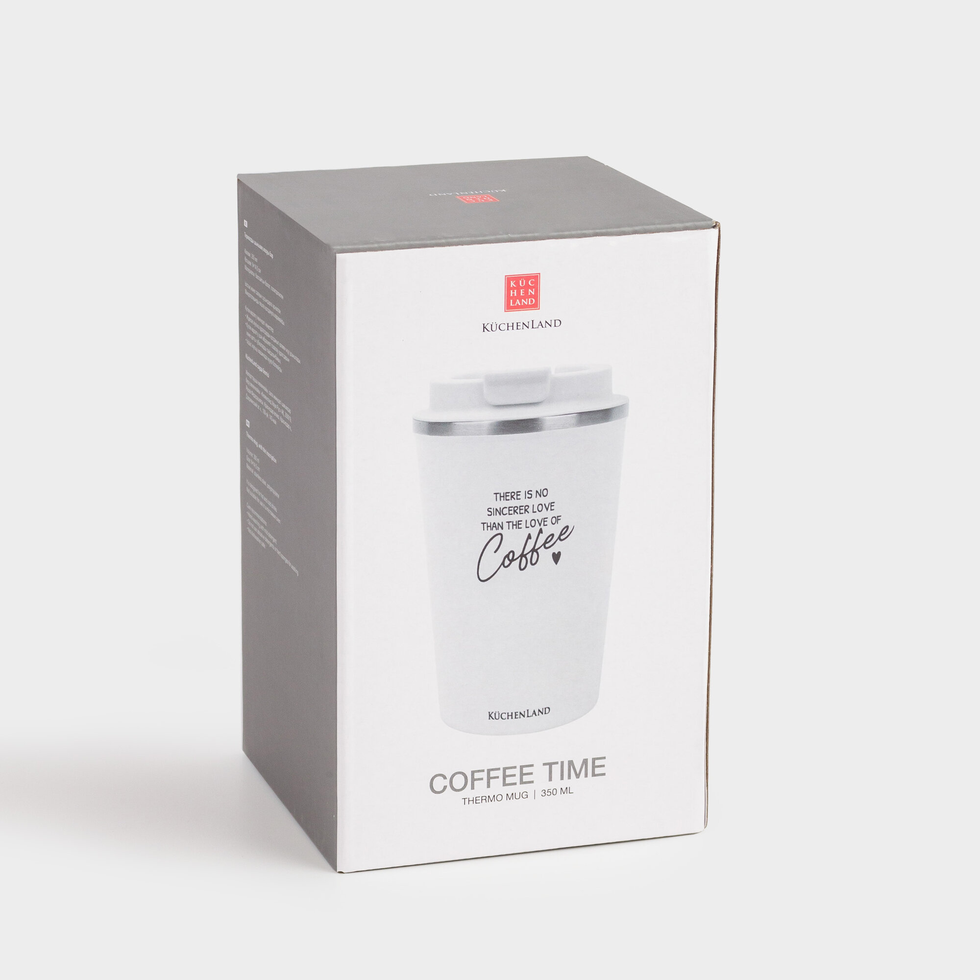 Купить Термокружка, Kuchenland, 350 мл, сталь/пластик, белая, с надписью, Coffee time