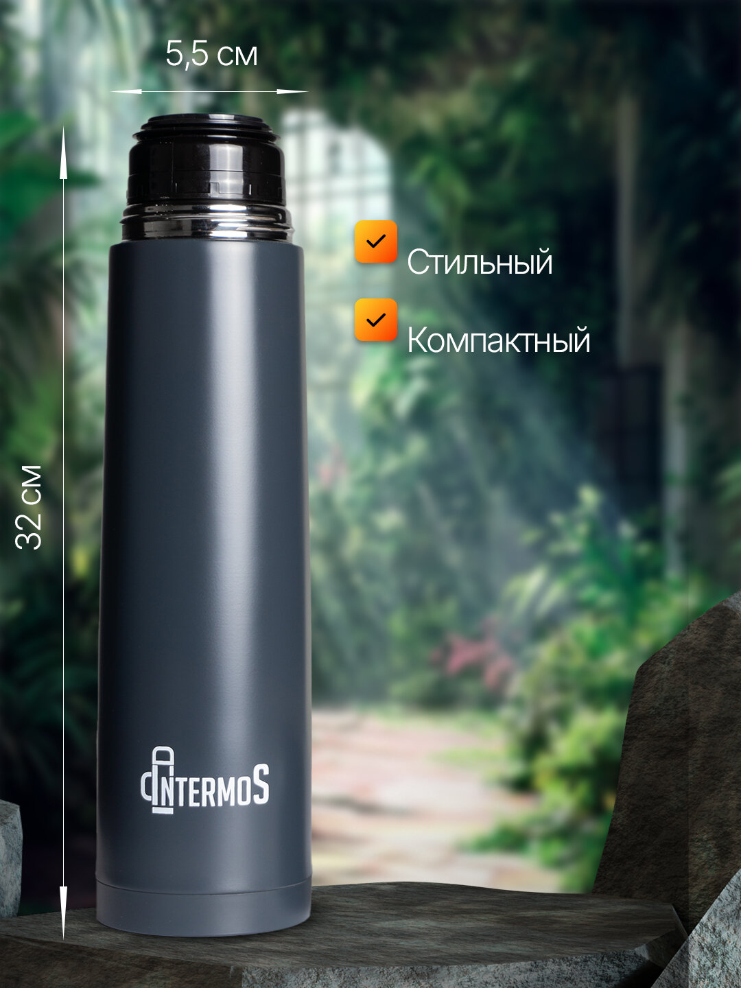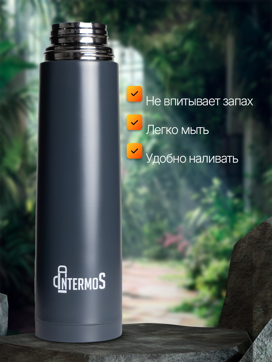 Термос 1 литр IntermoS классический с узким горлом, с кнопкой, нержавеющая сталь, серый интересное: