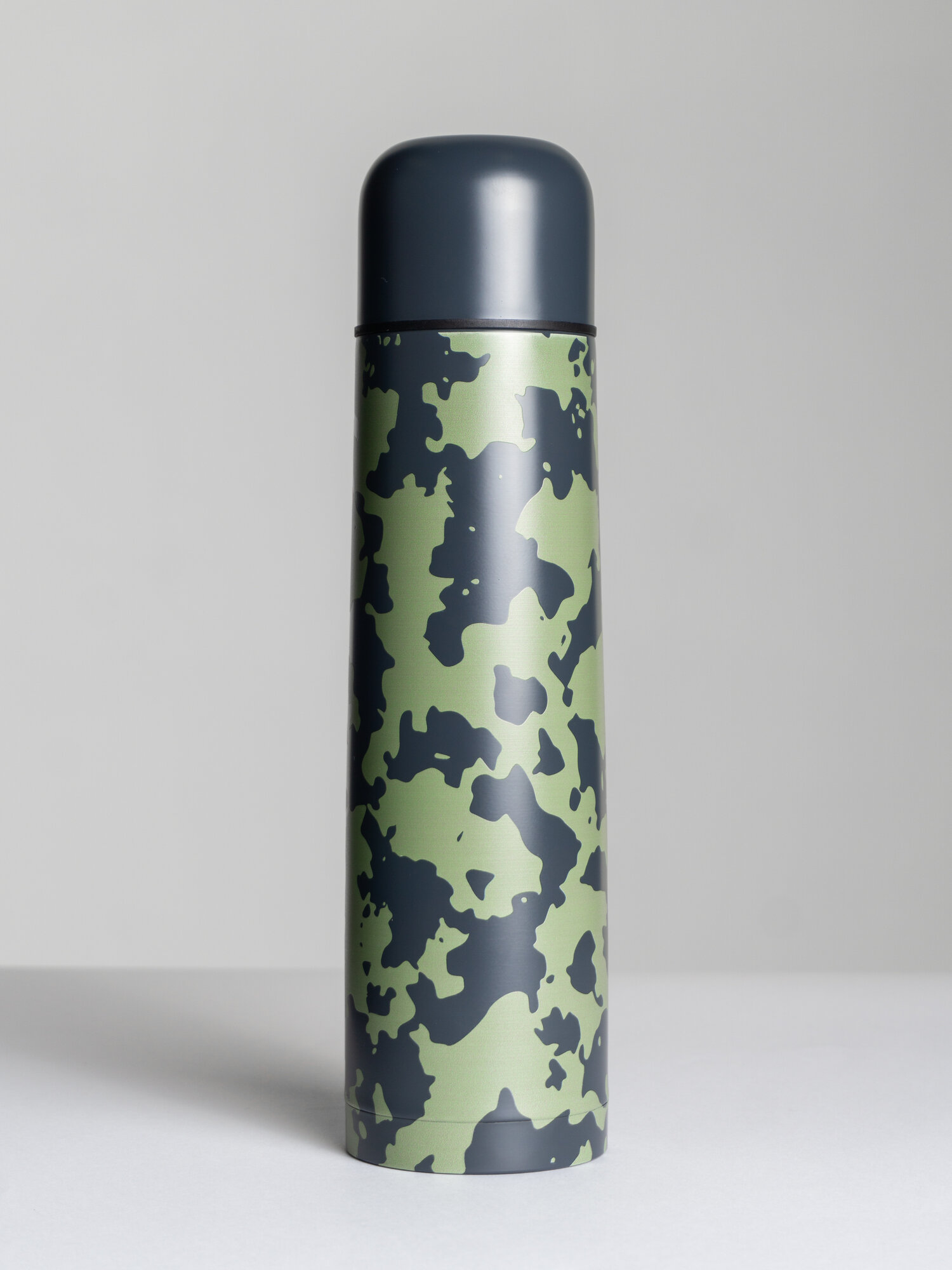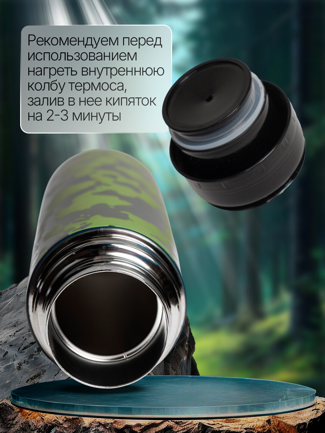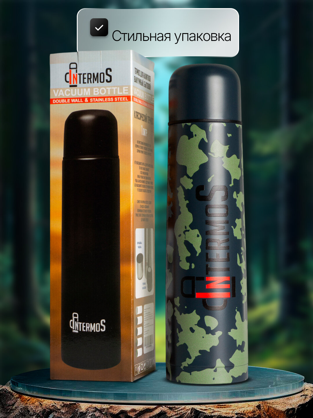 Термос 1 литр IntermoS классический с узким горлом, с кнопкой, нержавеющая сталь, камуфляж интересное: