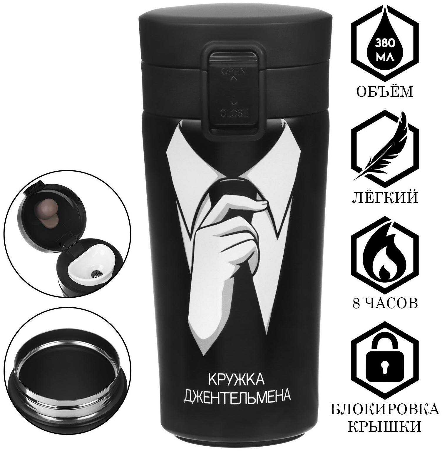 СохранитьТермокружка, 380 мл, Style "Кружка джентельмена", сохраняет тепло 8 ч, с ситечком интересное: