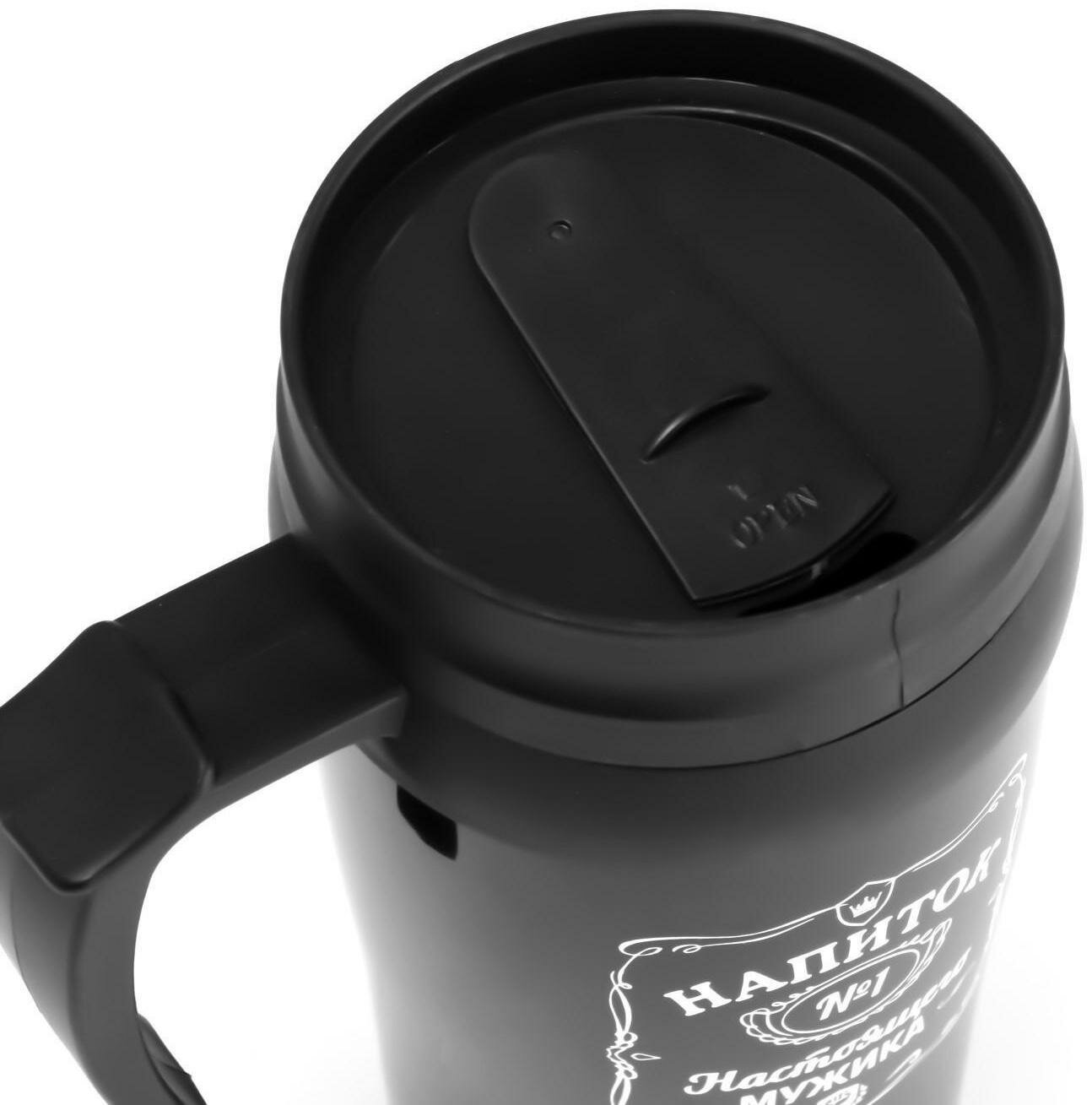 Термокружка, серия: Автомобильная, "100 % мужик", 450 мл, сохраняет тепло 4 ч, 12 х 17 см
