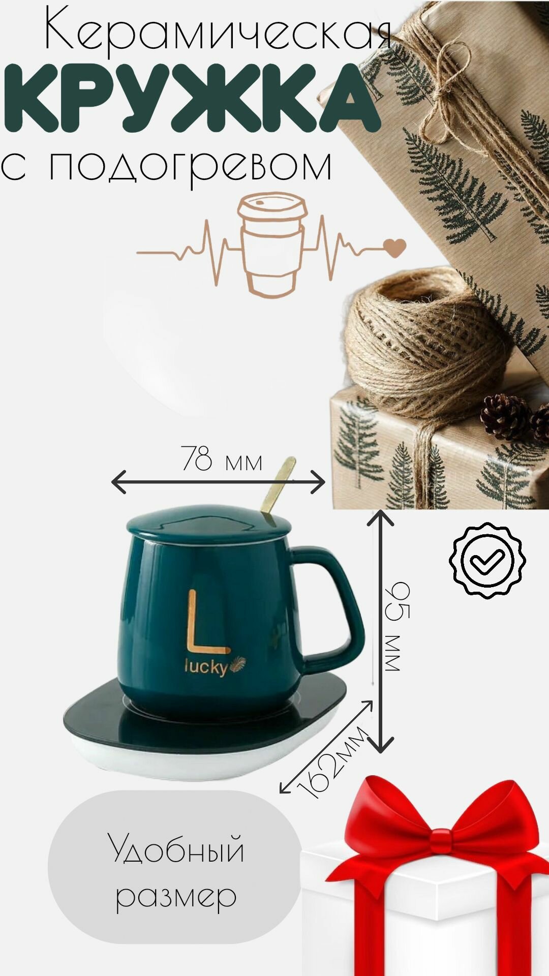 Кружка K-Shop, с подогревом, керамическая, изумрудная, 380мл, с USB интересное: