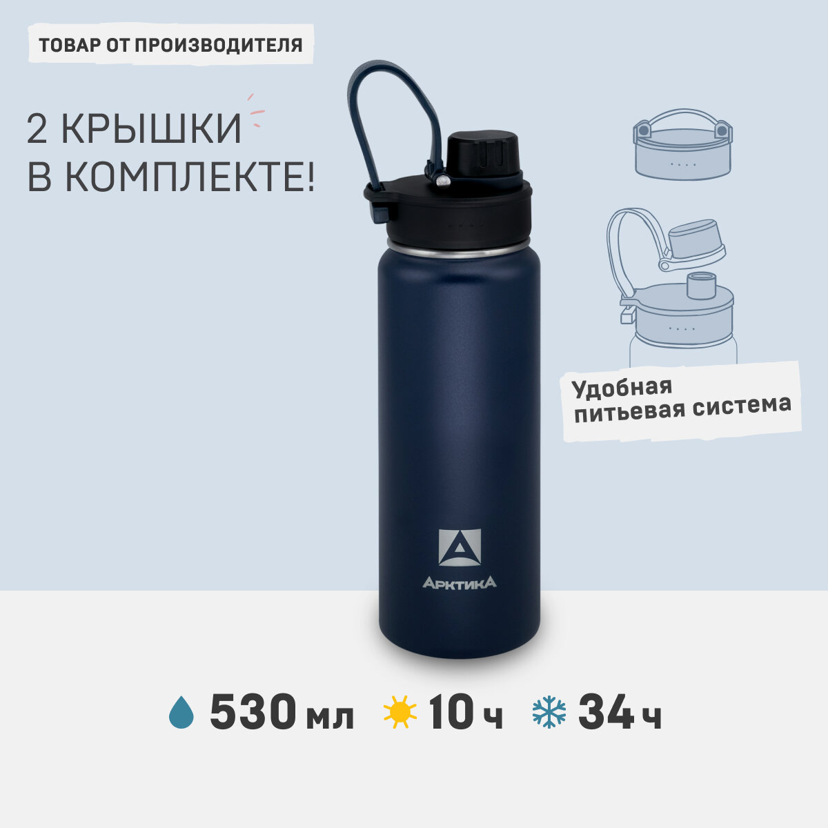 Купить Термокружка Арктика 530мл с дополнительной пробкой с питьевой системой, 708-530S, синий текстурный