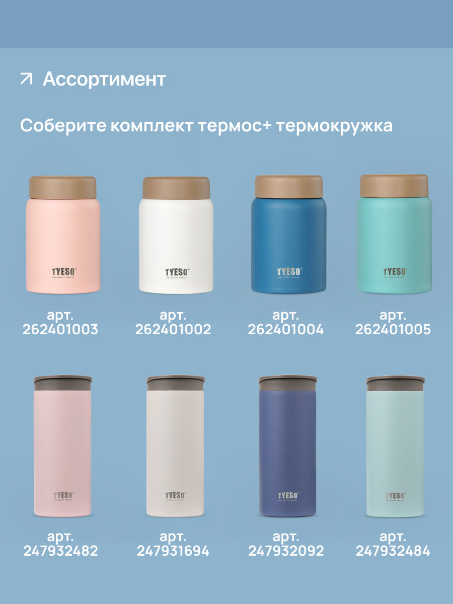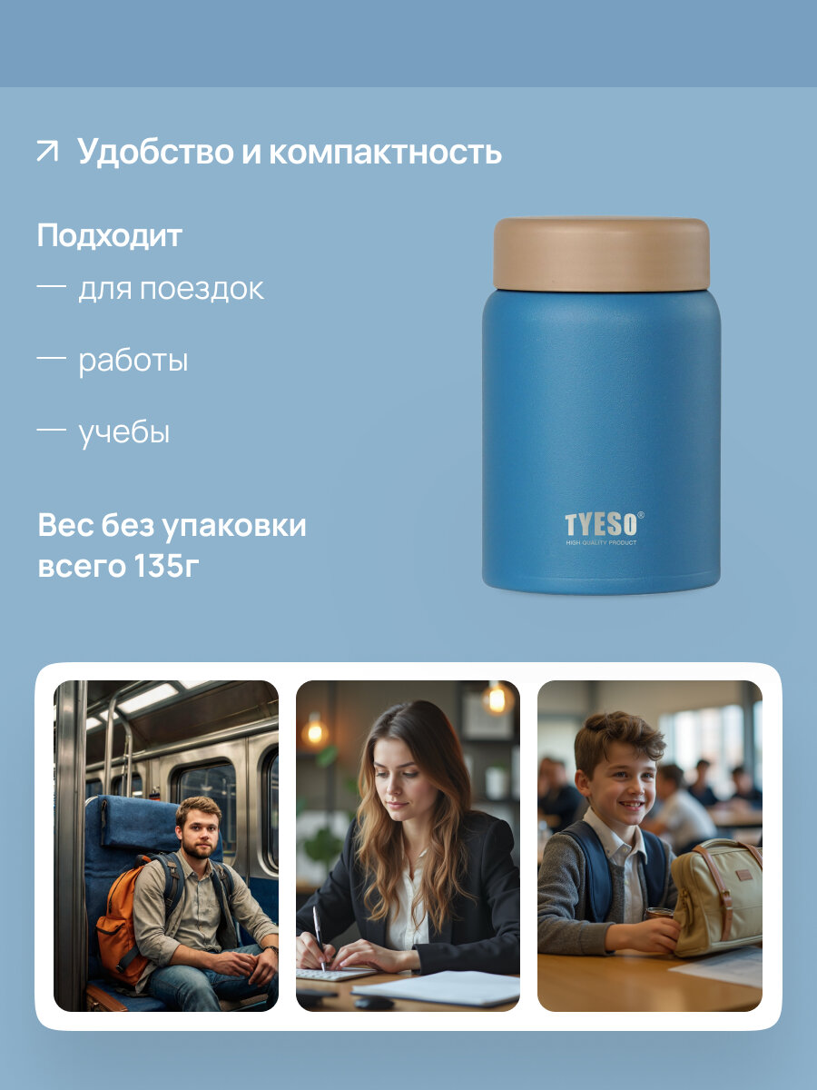 Купить Термос TYESO, для еды, с широкой горловиной, 280мл, нержавеющая сталь, синий