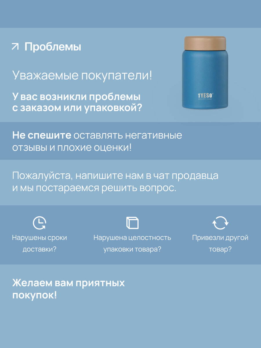 Термос TYESO, для еды, с широкой горловиной, 280мл, нержавеющая сталь, синий интересное: