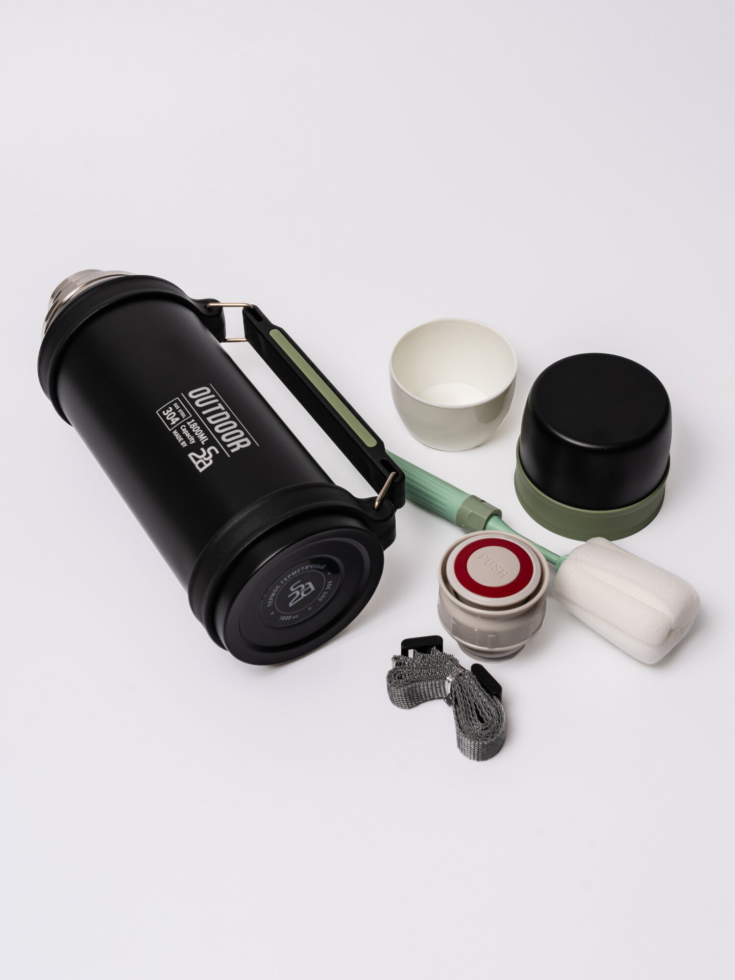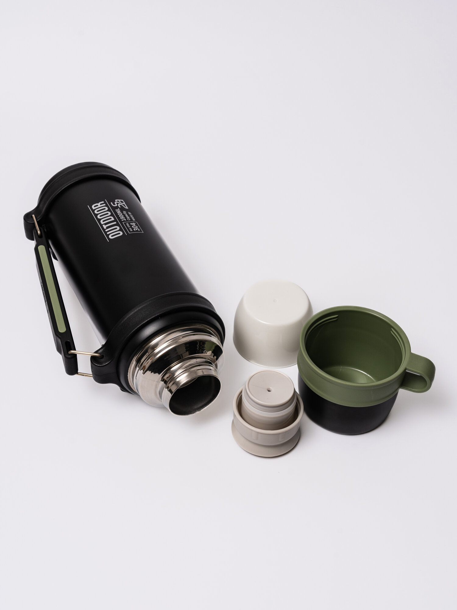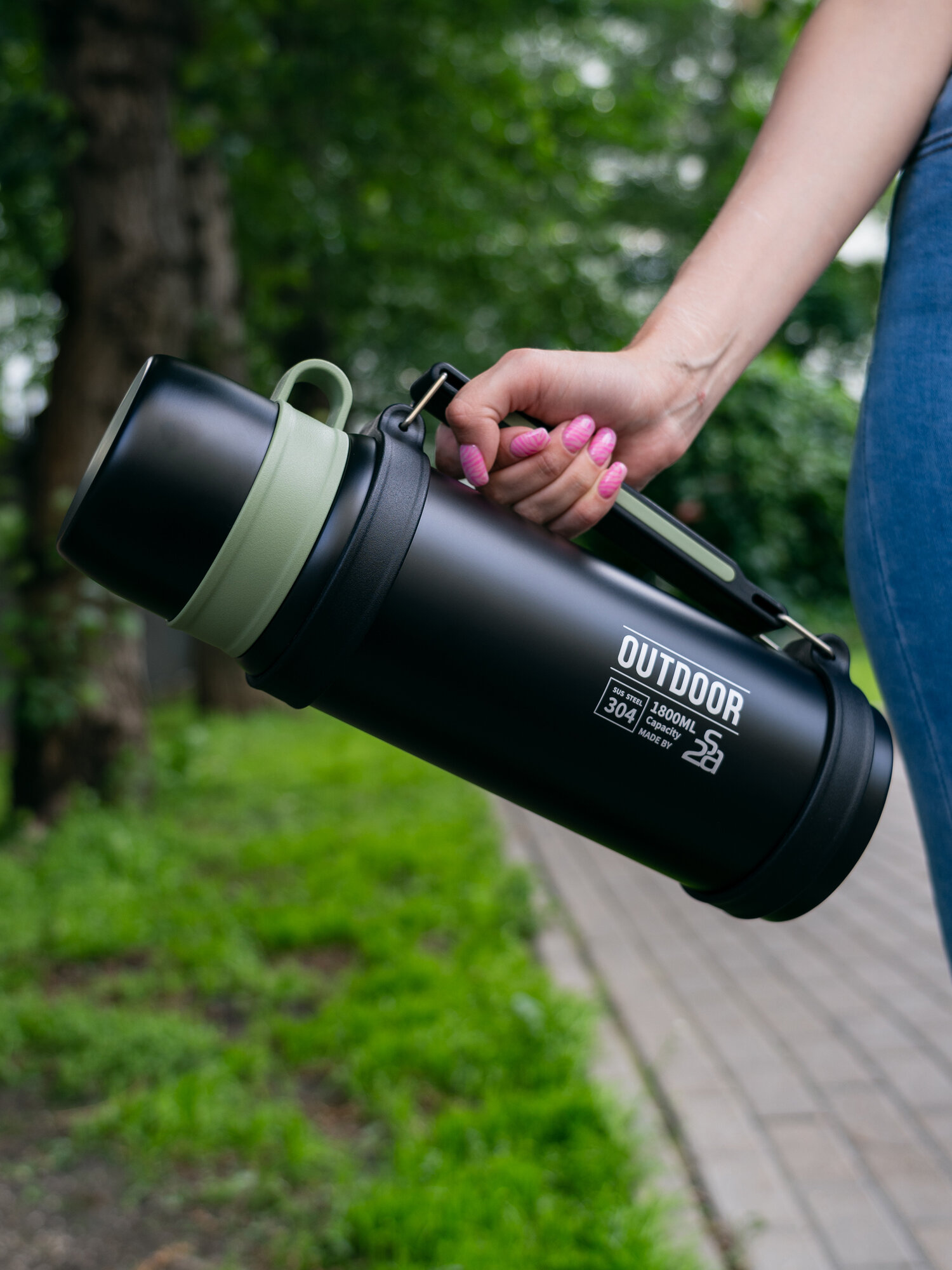 Термос 2SA, герметичный, 1800 мл, черный, колба сталь, 2 чашки, кнопка-клапан интересное: