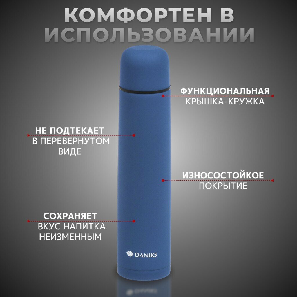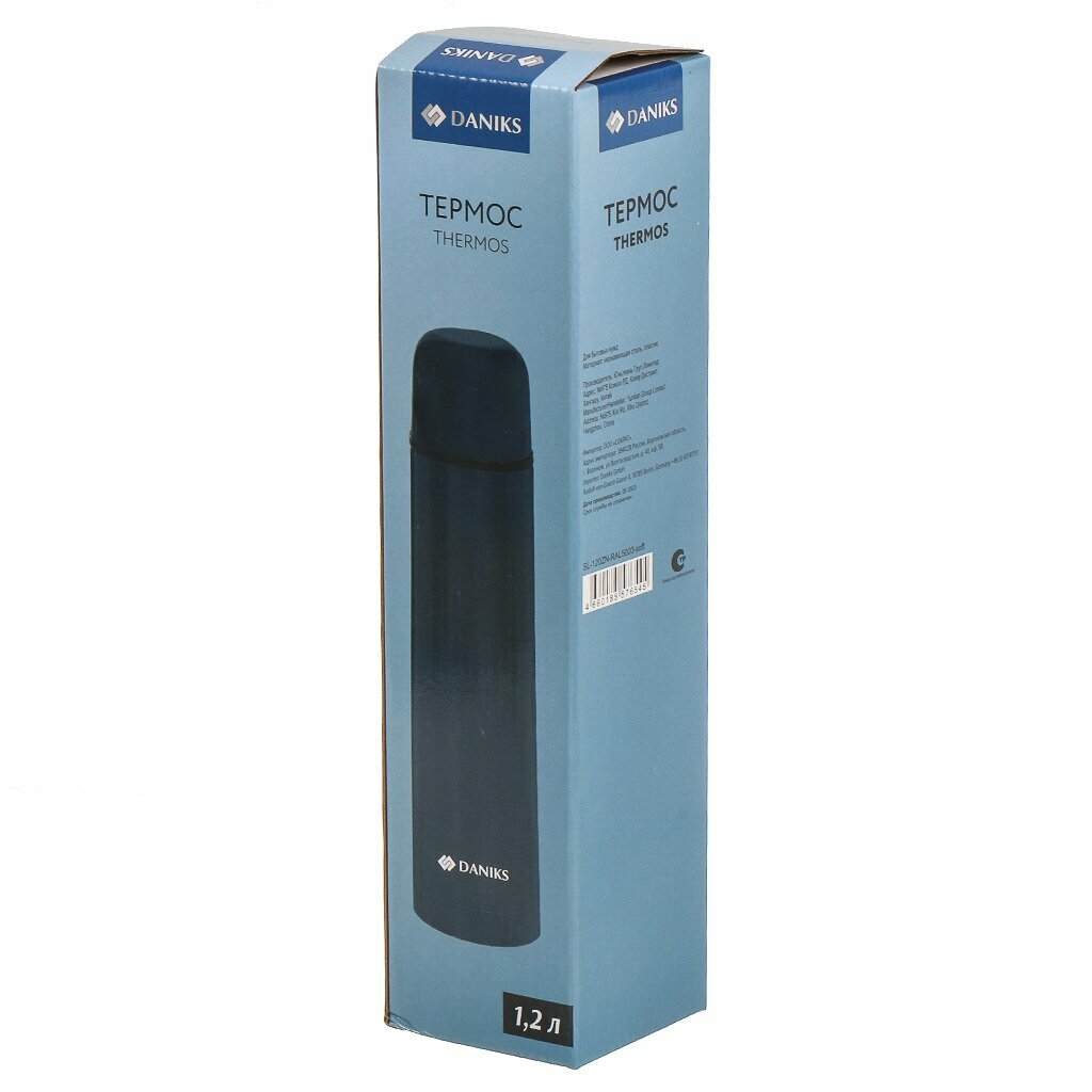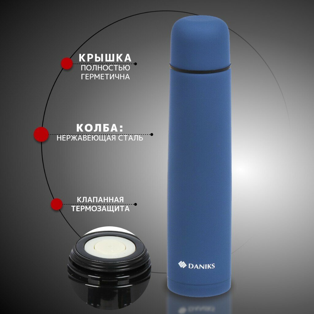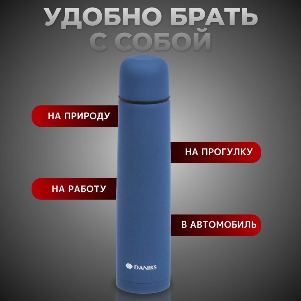 Термос нержавеющая сталь, 1.2 л, узкая горловина, Daniks, колба нержавеющая сталь, сапфирово-синий, SL-120ZN-RAL5003-soft интересное:
