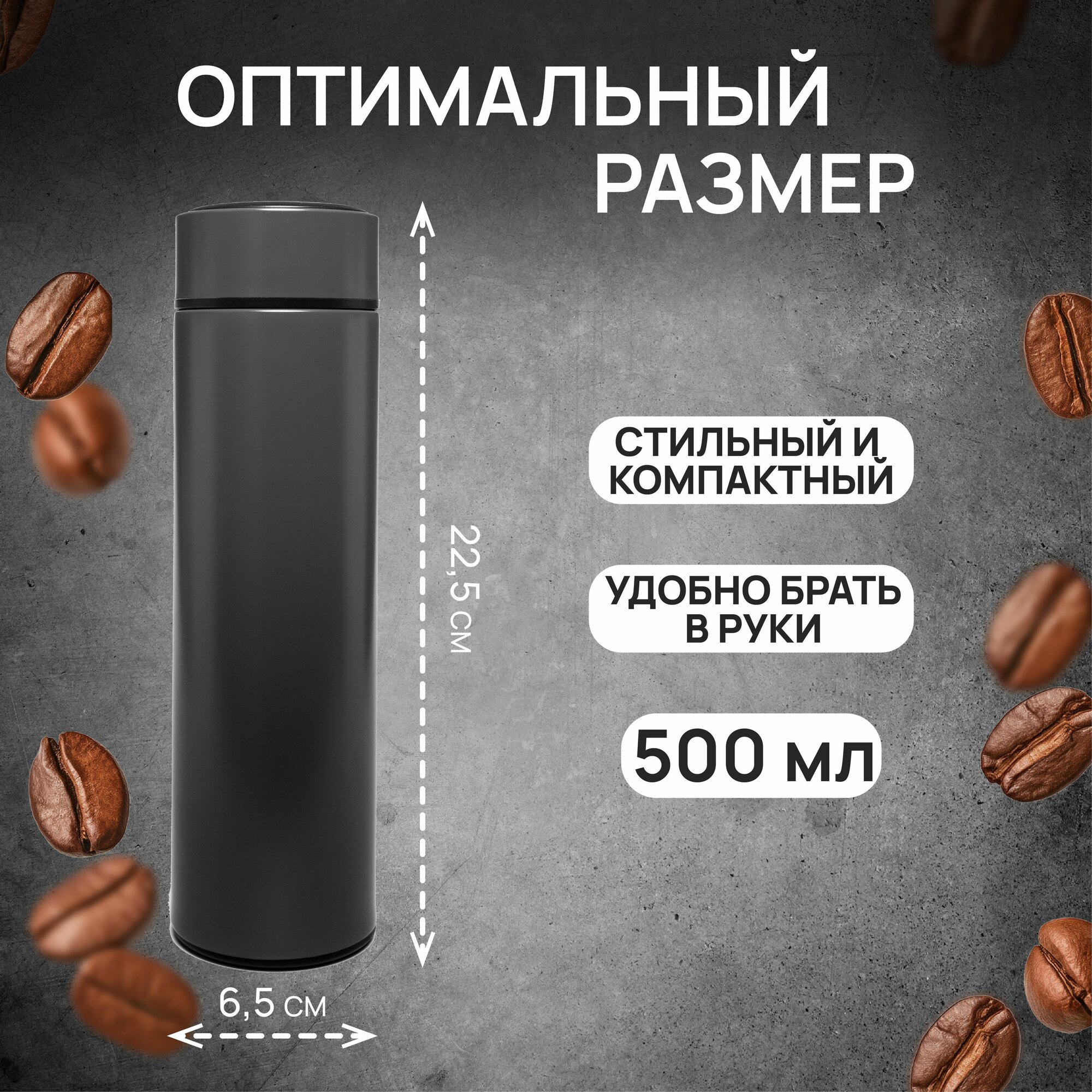Термос вакуумный 500 мл с ситом и пластиковым дном DOMA нержавеющая сталь (серый) интересное: