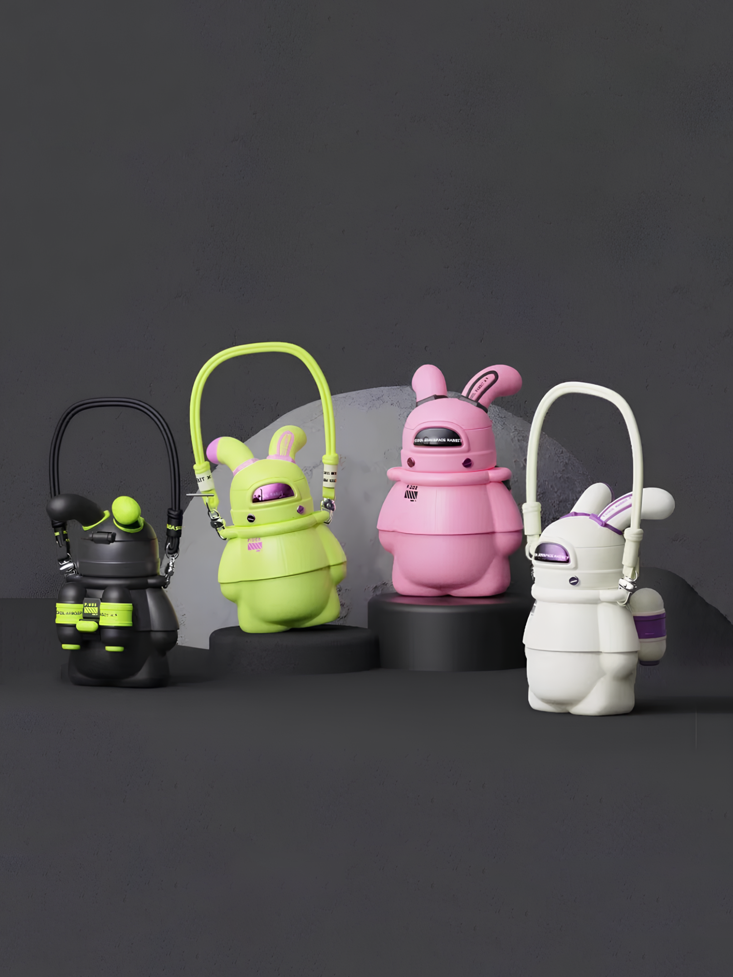Купить Термос для детей SPACE RABBIT, непроливайка с ремешком и кнопкой открытия c трубочкой 430 мл, черный