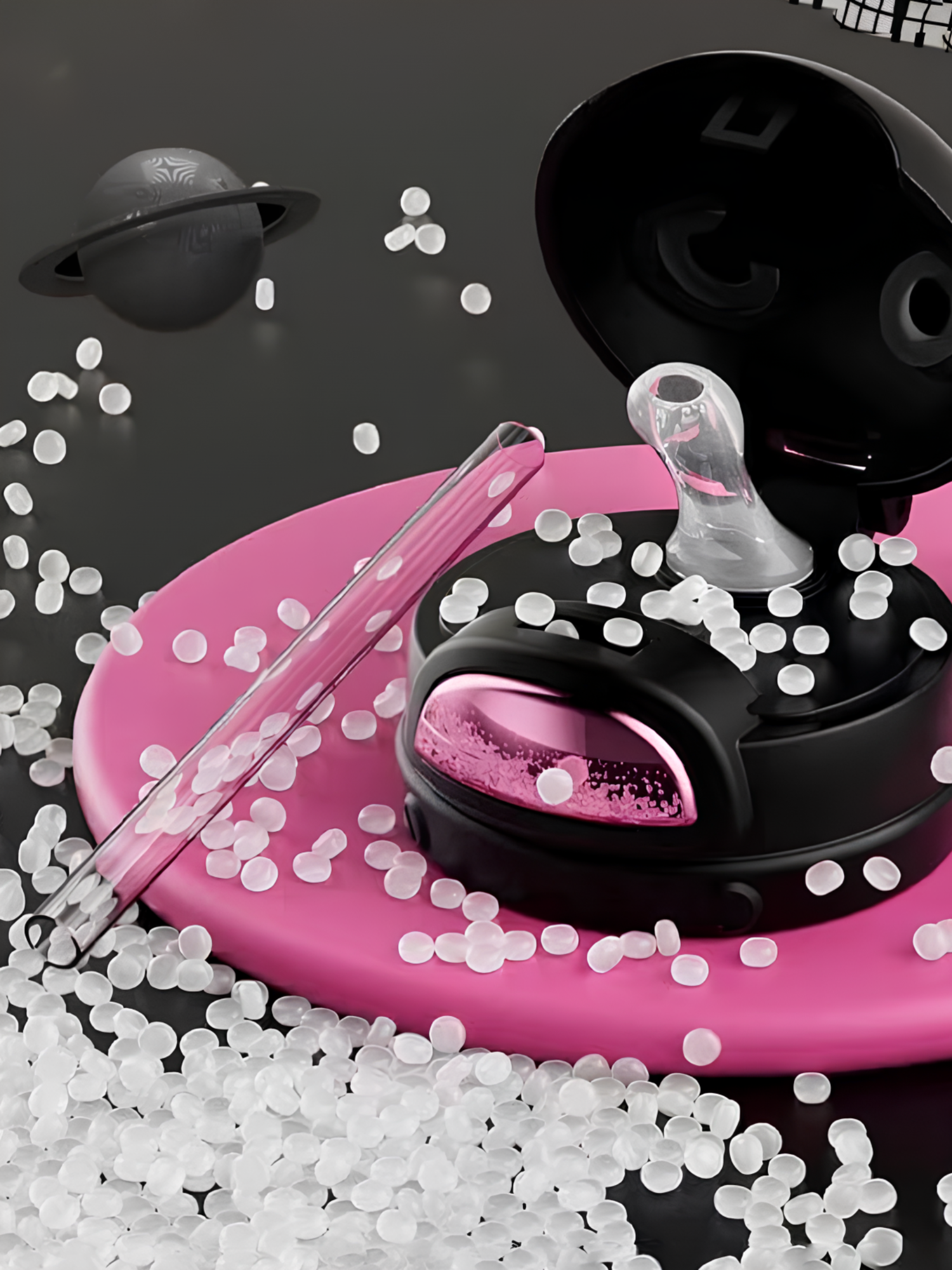 Термос для детей SPACE RABBIT, непроливайка с ремешком и кнопкой открытия c трубочкой 430 мл, розовый