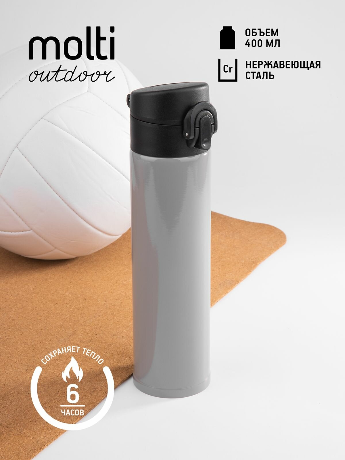 Термокружка для чая для кофе туристическая термостакан походный, Molti, серая, 400 мл интересное: